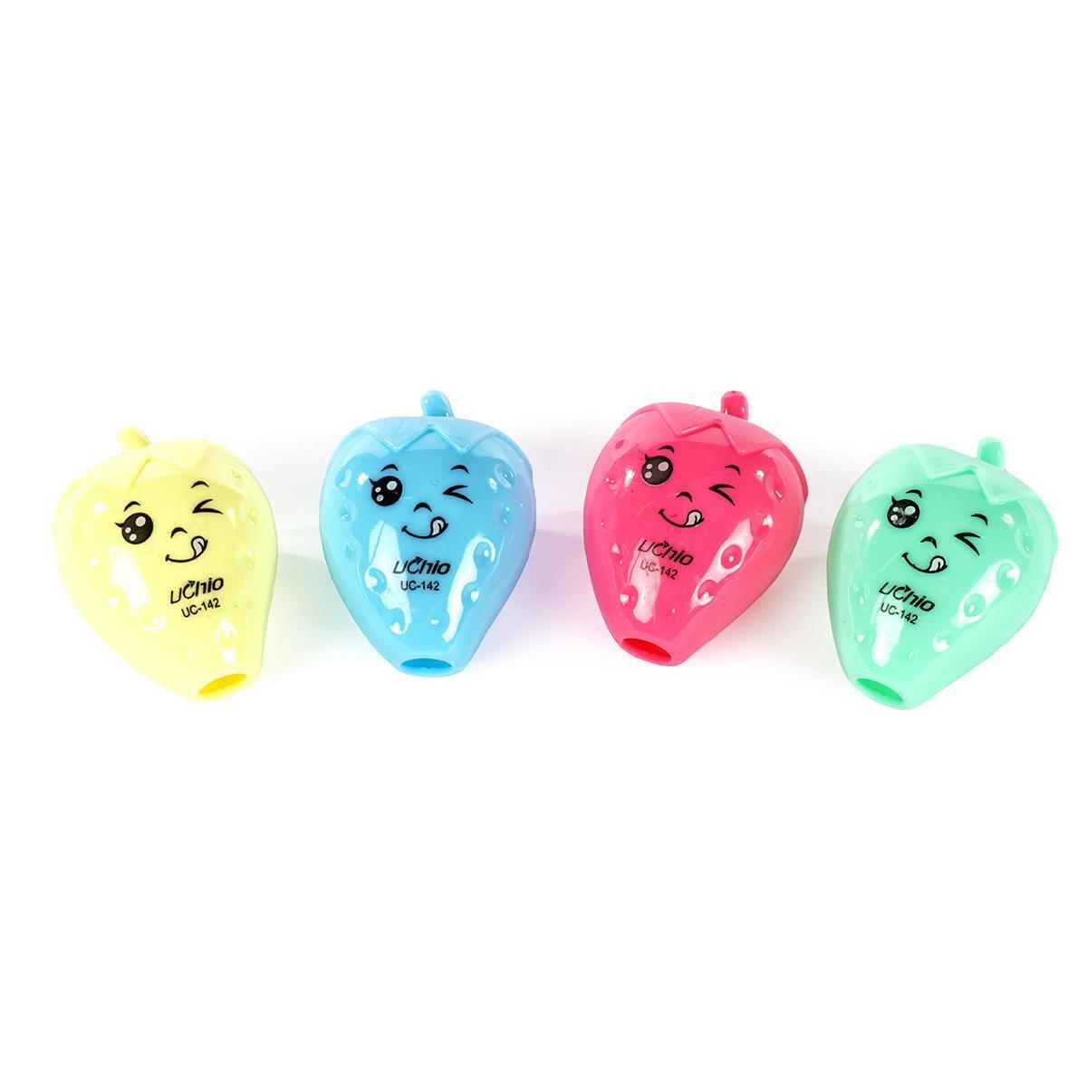 Точилка «Улыбки» сочетает в себе эргономичный дизайн и надежность: пластиковый корпус в форме клубники с улыбающимися мордочками делает процесс затачивания карандашей приятным и безопасным даже для детей.