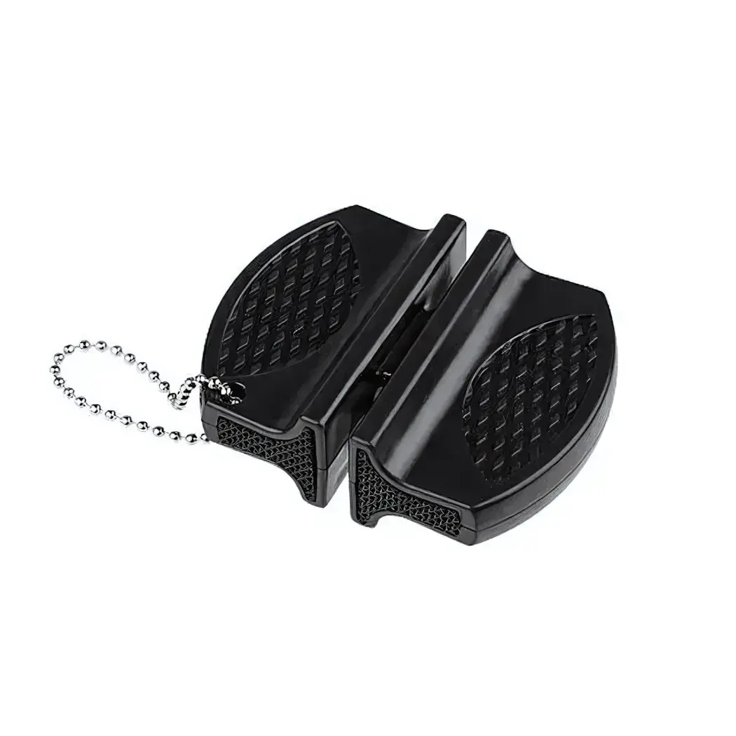 Точилка универсальная 2 в 1 с цепочкой, рифленая поверхность, черный цвет