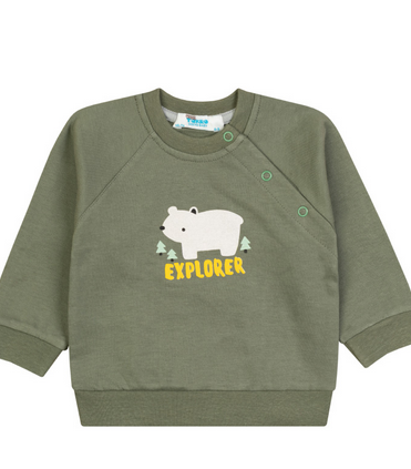 Подарите вашему ребенку комфорт и стиль с этой трикотажной толстовкой цвета хаки. Идеальный выбор для повседневных приключений и активных игр. Мягкий материал обеспечит уют, а стильный дизайн с изображением белого медведя и надписью "Explorer" добавит индивидуальности в гардероб вашего малыша.