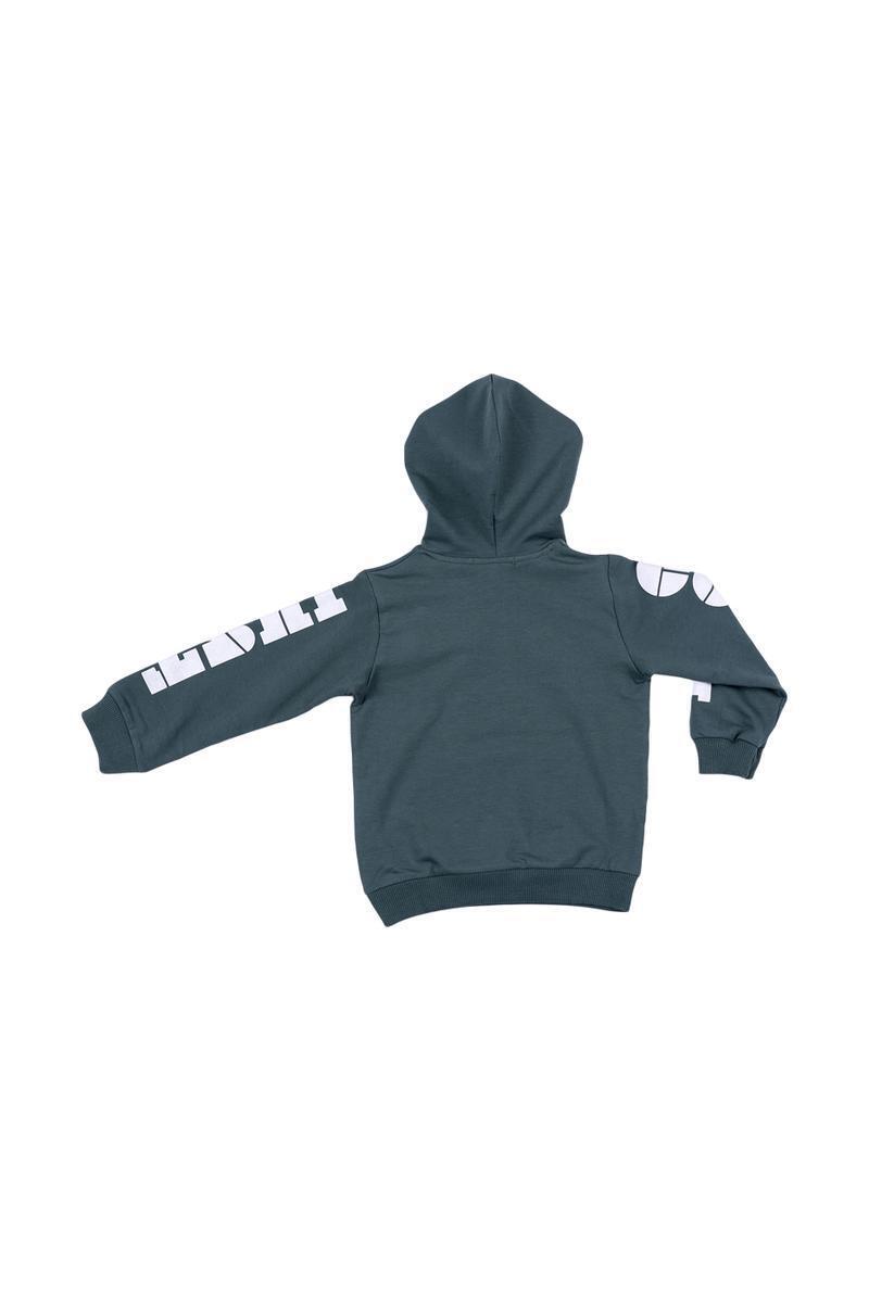Подарите своему ребенку комфорт и свободу движений с этой модной толстовкой! Темно-зеленый пуловер идеально подойдет для прогулок, занятий спортом и повседневной носки. Мягкий футер обеспечит приятные ощущения на коже, а удобный капюшон защитит от ветра и непогоды.