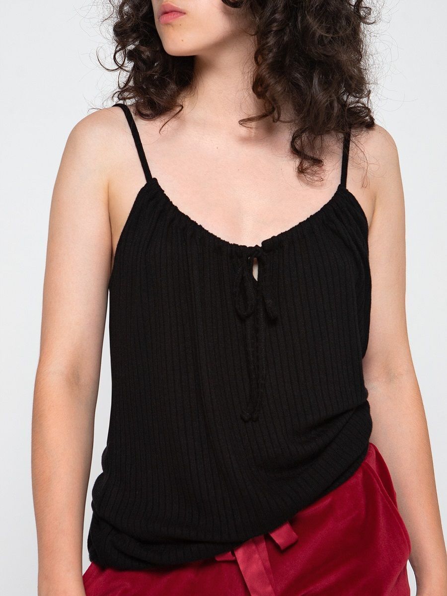 Топ из вискозного трикотажа черный, M, с завязкой и рифленой текстурой