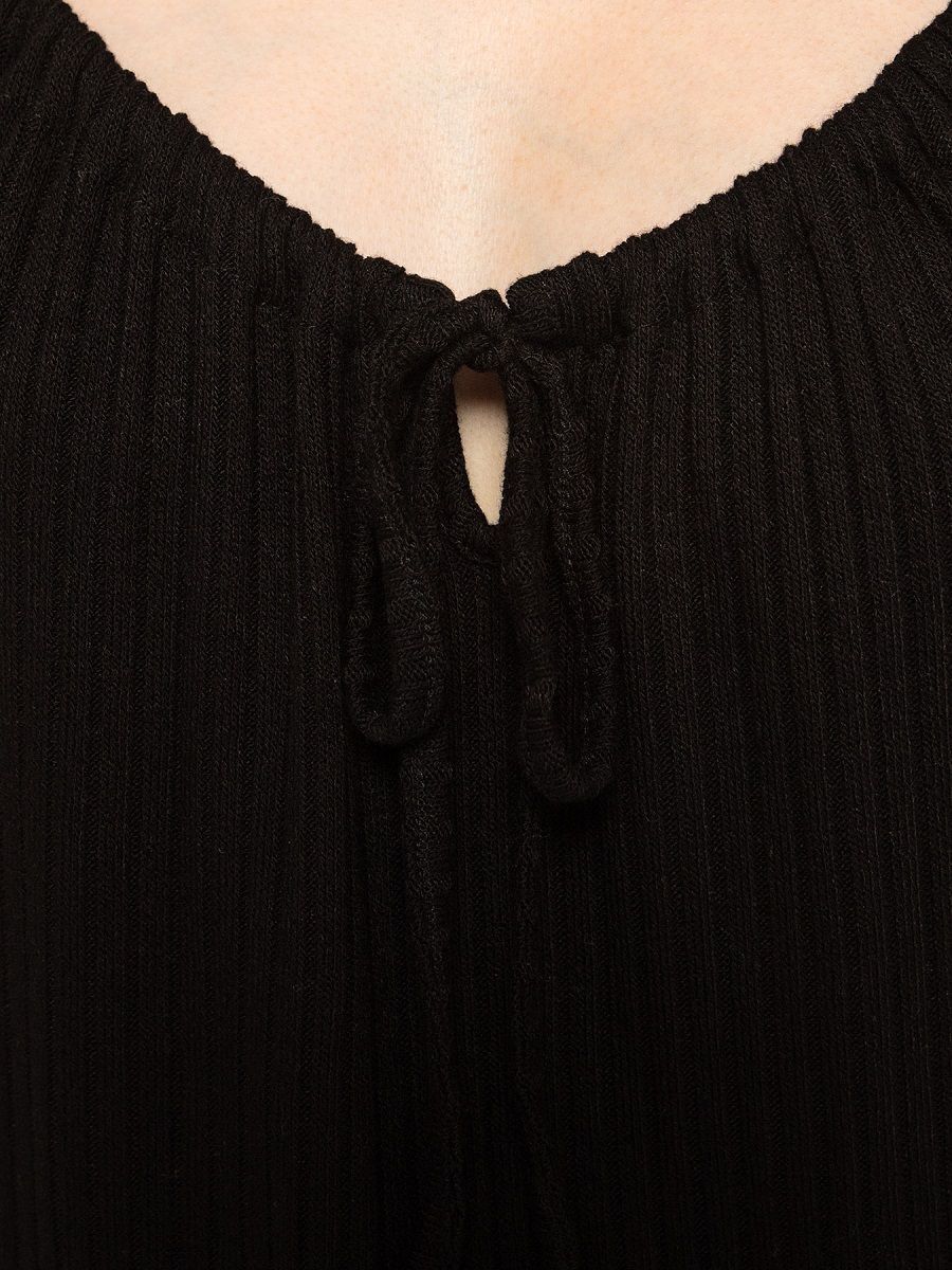 Топ женский из вискозного трикотажа в рубчик, черный, XL, свободный крой, завязка на груди