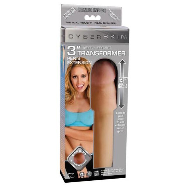 Удлинитель члена «X-Tra Thick Transformer», 7,5 см + 1,5 см, CyberSkin, телесный, комплект: насадка, смазка, порошок