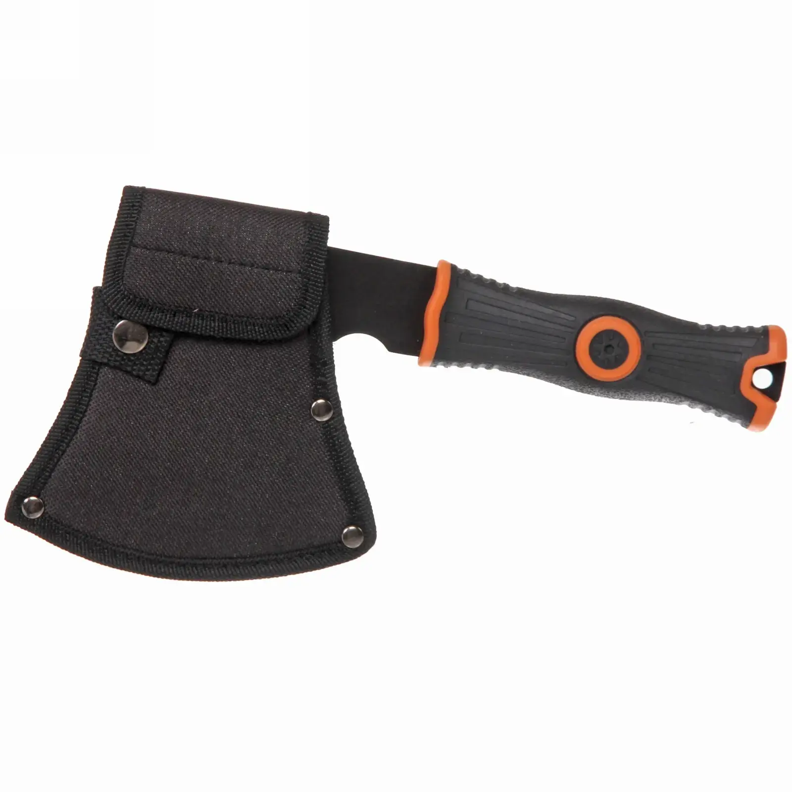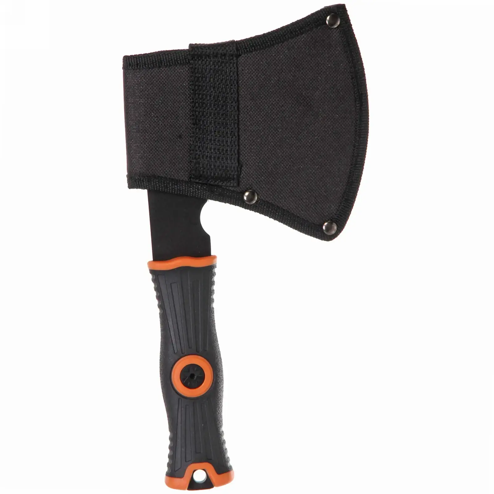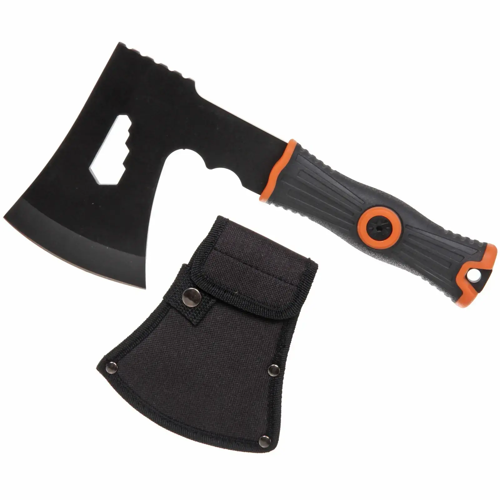 Топор имеет черное лезвие и текстурированную рукоятку с оранжевыми вставками, что не только делает его стильным, но и удобным в использовании. Чехол, выполненный из прочного текстиля, защищает лезвие от повреждений и обеспечивает безопасное хранение. Этот топор станет вашим надежным спутником в любых приключениях на свежем воздухе.