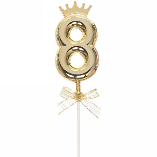 Выбирая топпер «8», вы получаете не только красивый, но и практичный элемент декора. Его блестящая поверхность и корона в верхней части придают изделию особый шик. Топпер выполнен из прочного материала, что гарантирует его долговечность и устойчивость к повреждениям. Он легко очищается и может использоваться многократно, что делает его экономически выгодным решением для ваших праздников.