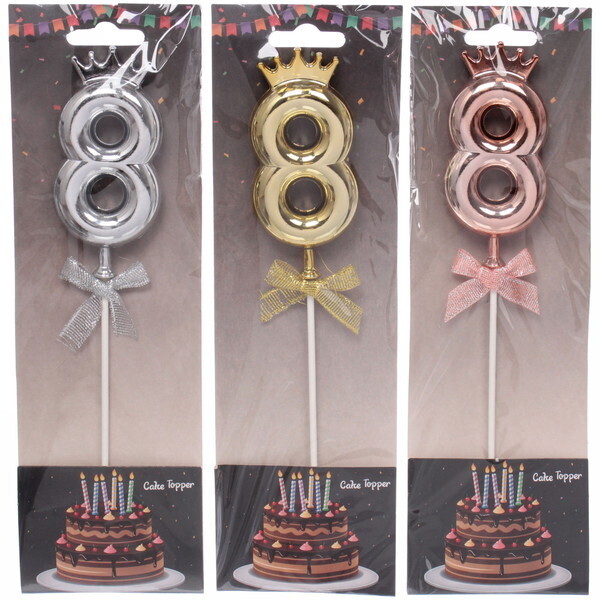 Создайте незабываемую атмосферу на вашем празднике с топпером в форме цифры «8». Этот стильный аксессуар добавит ярких красок и праздничного настроения вашему торту, делая его центром внимания на любом торжестве. Топпер выполнен из качественного пластика и представлен в трех великолепных цветах: золотом, серебряном и розовом. Он идеально подходит для празднования дня рождения, юбилея или другого важного события.