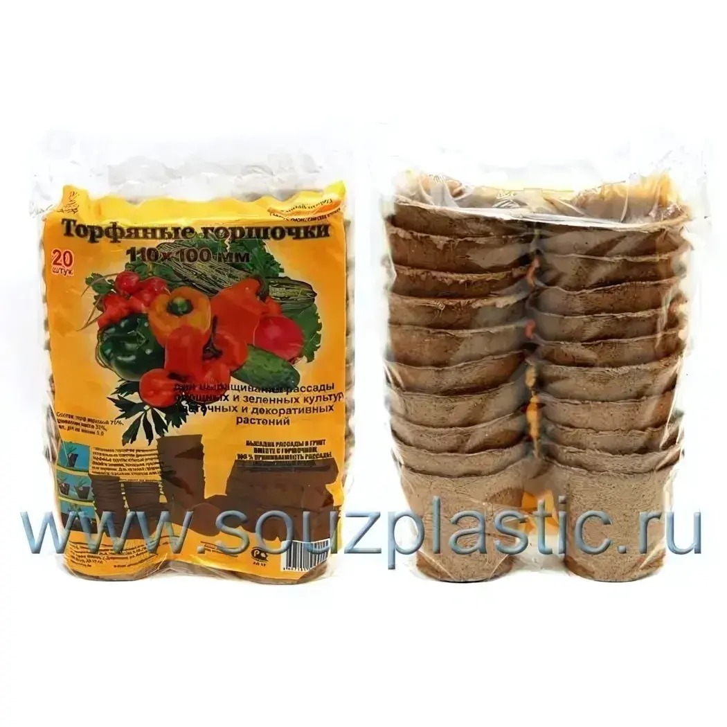 Торфяной горшочек 110х100 мм, 20 штук, экологичный, для рассады и овощей
