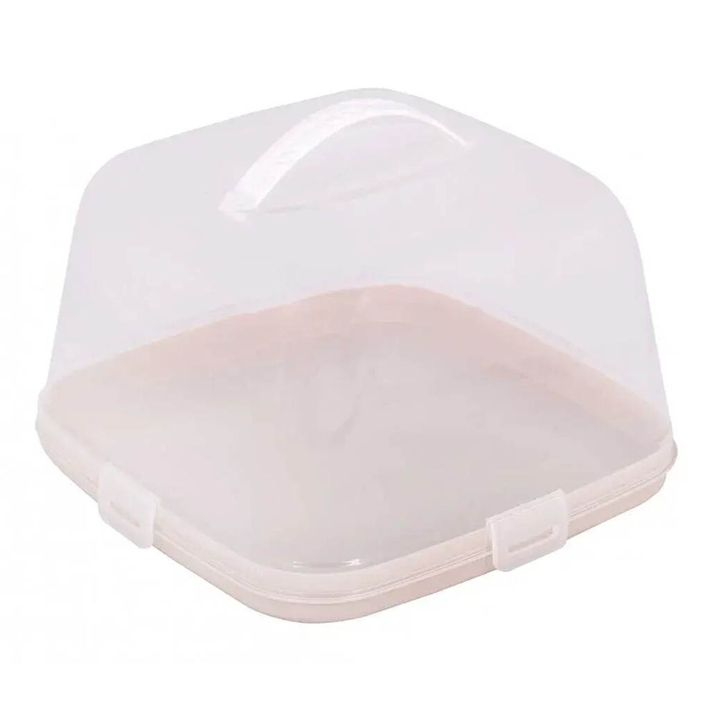 Тортница пластиковая 30х30см, светло-бежевая, с прозрачной крышкой