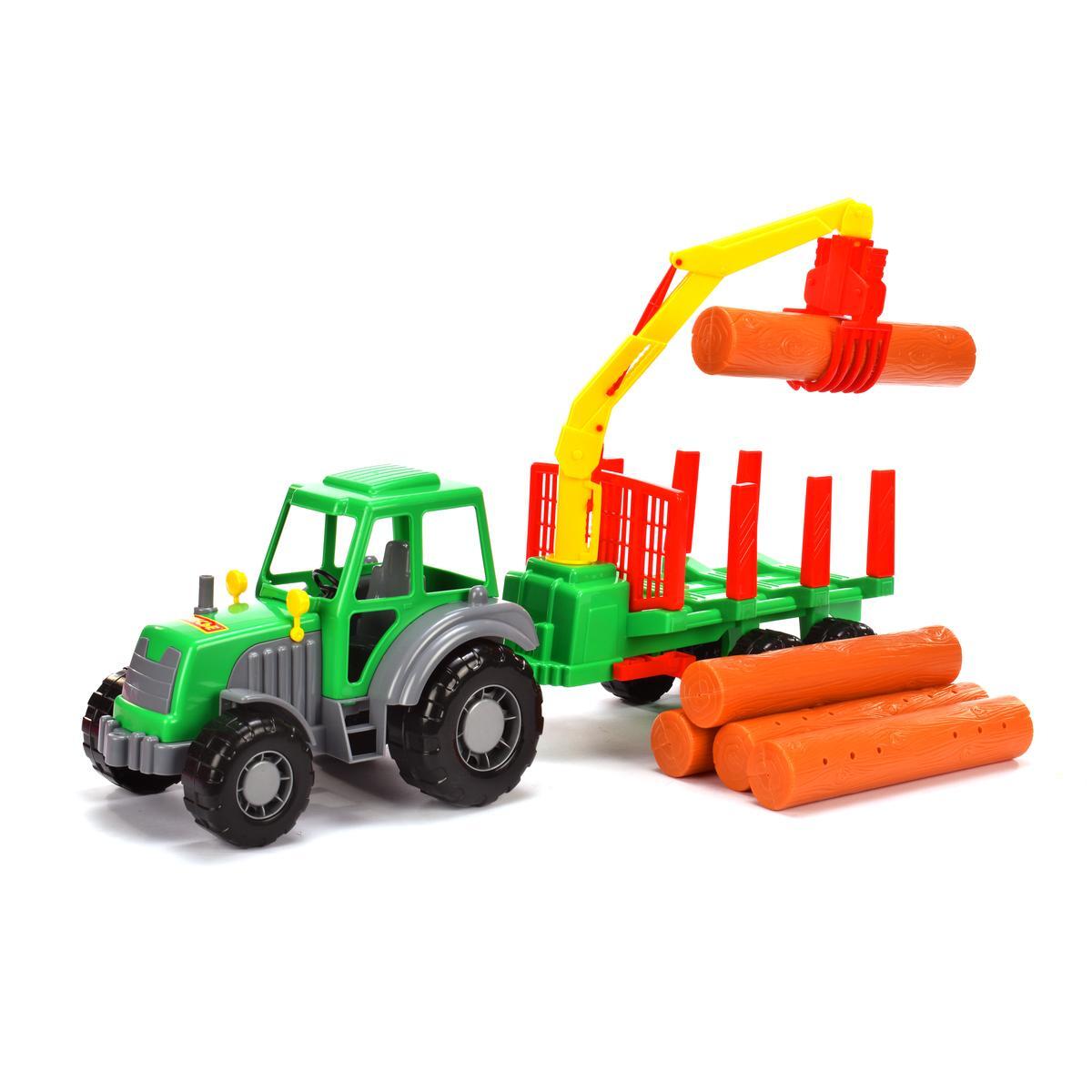 Этот комплект включает яркий зеленый трактор с подвижными элементами и механическим подъемником, а также вместимый прицеп с бревнами для увлекательных игр, связанных с погрузкой и транспортировкой. Сделанный из высококачественного пластика, он безопасен, долговечен и легко моется, что облегчает уход и обслуживание.