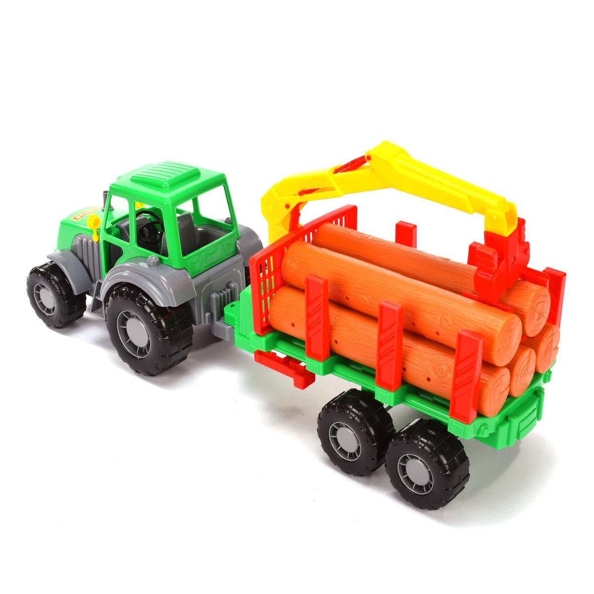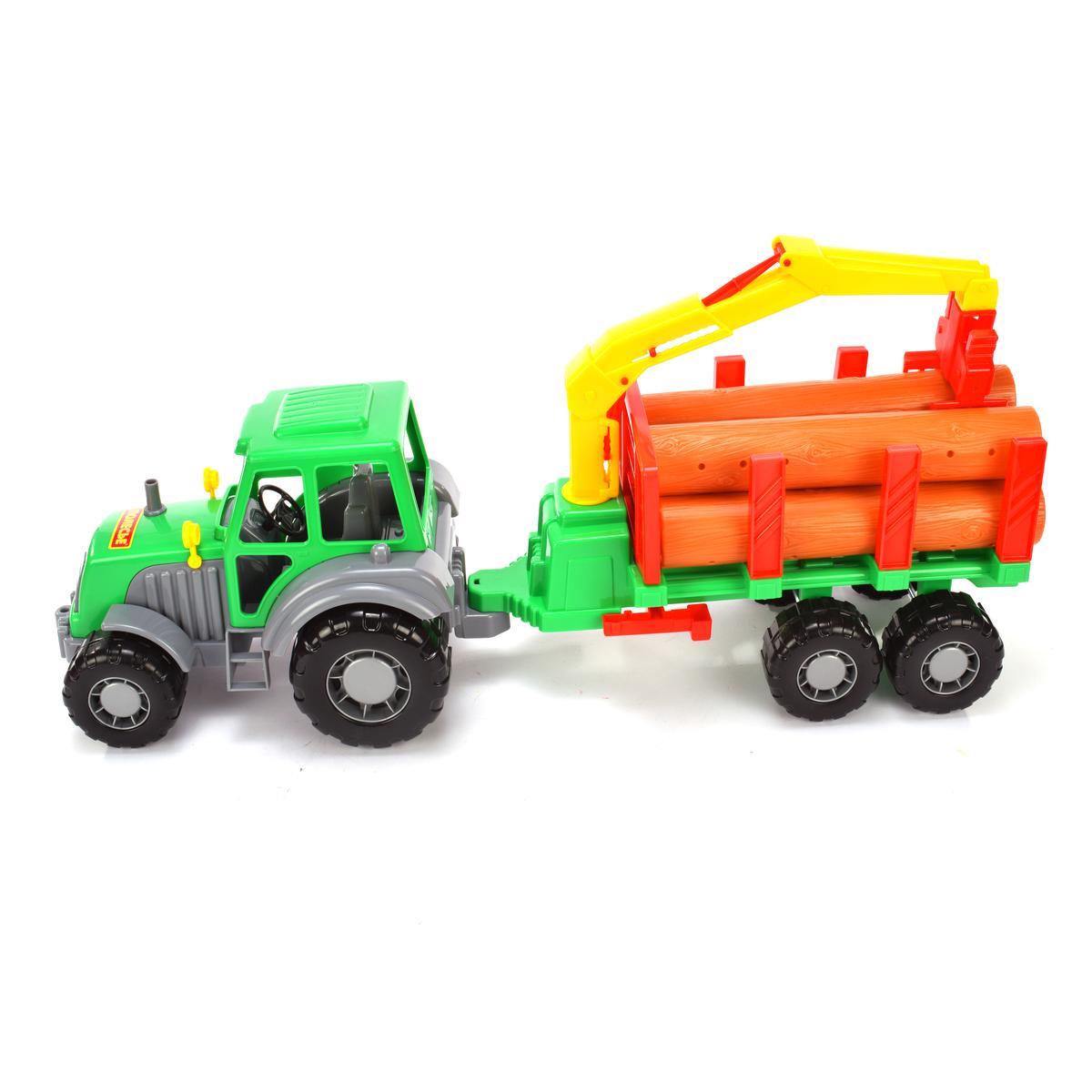 Образец реалистичного игрушечного трактора с прицепом — отличный выбор для юных любителей транспорта и грузовых машин.