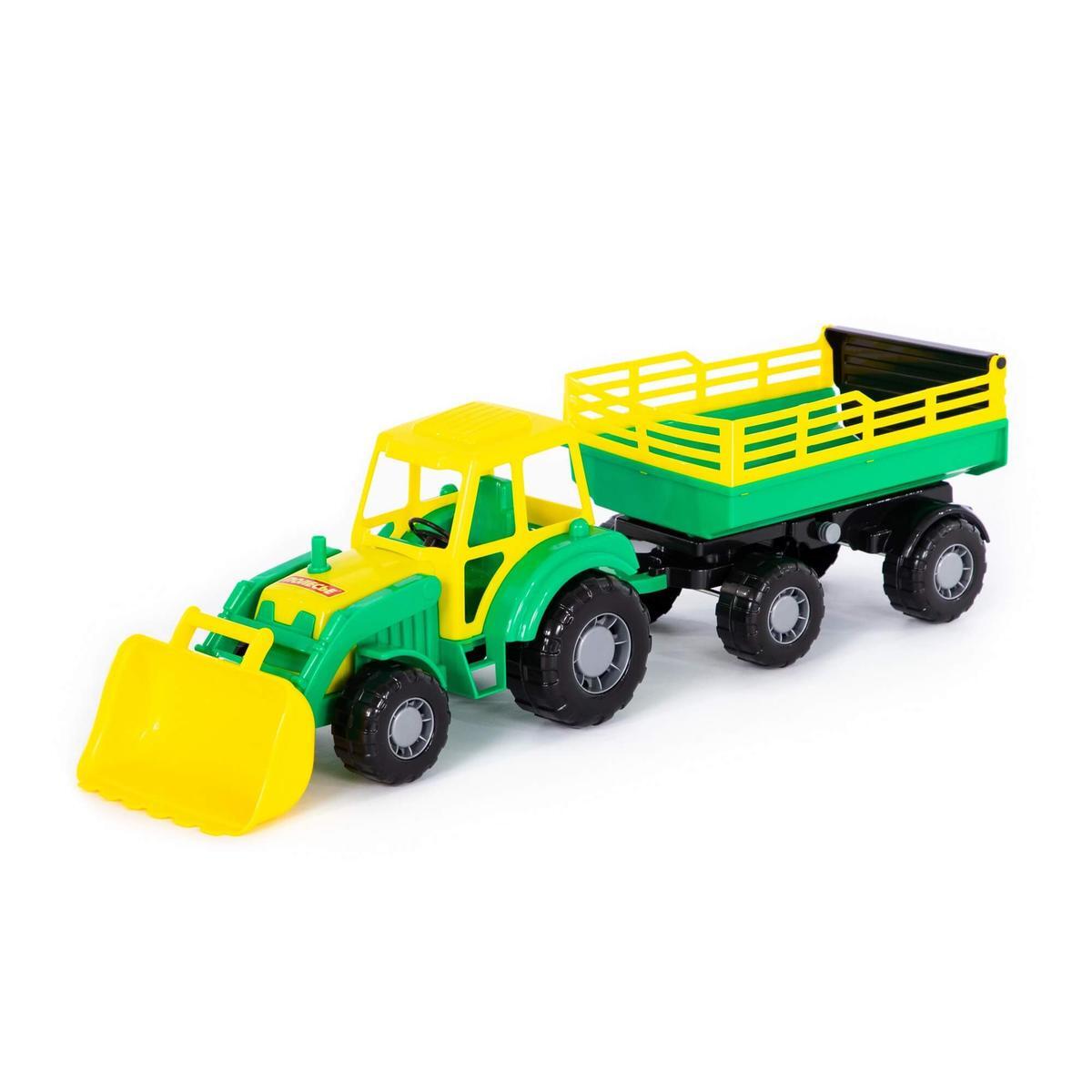 Яркий трактор «Алтай» с прицепом и подвижным ковшом — для увлекательной игры