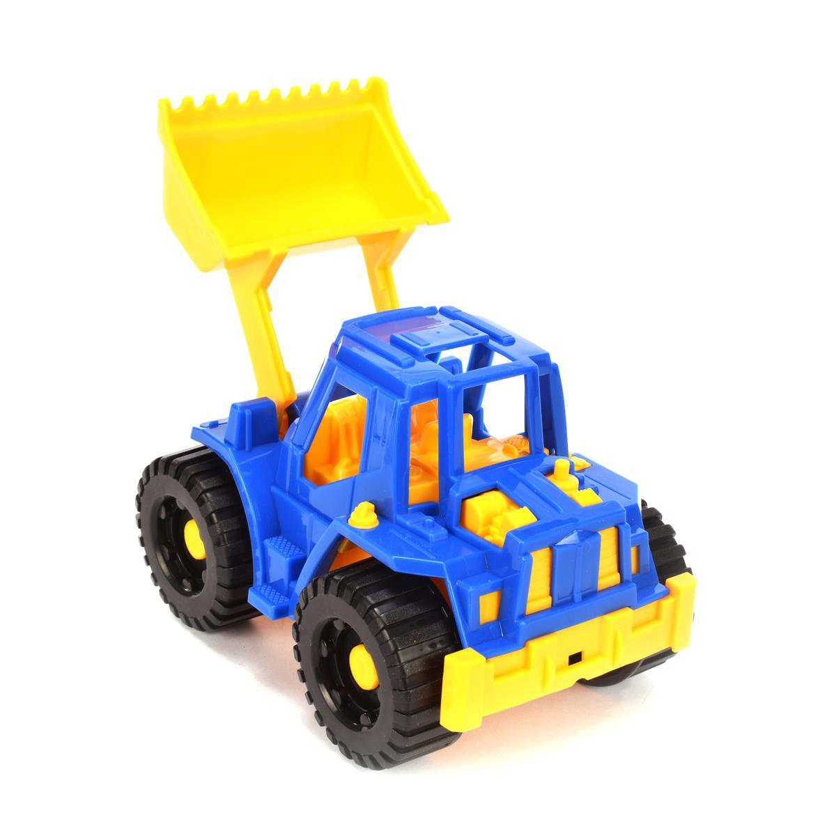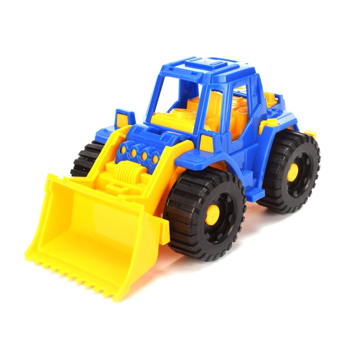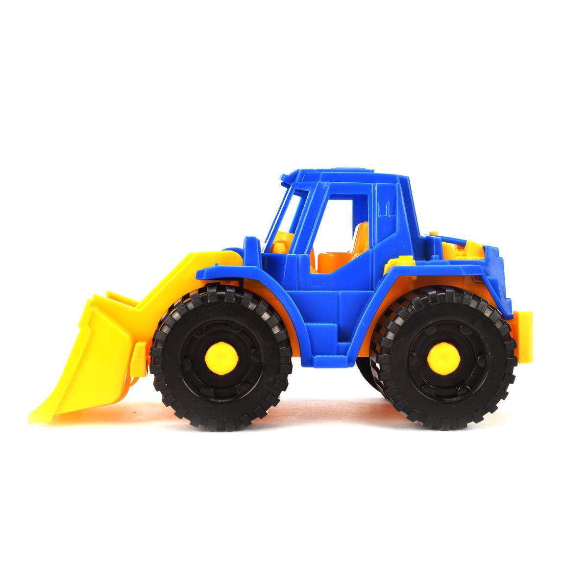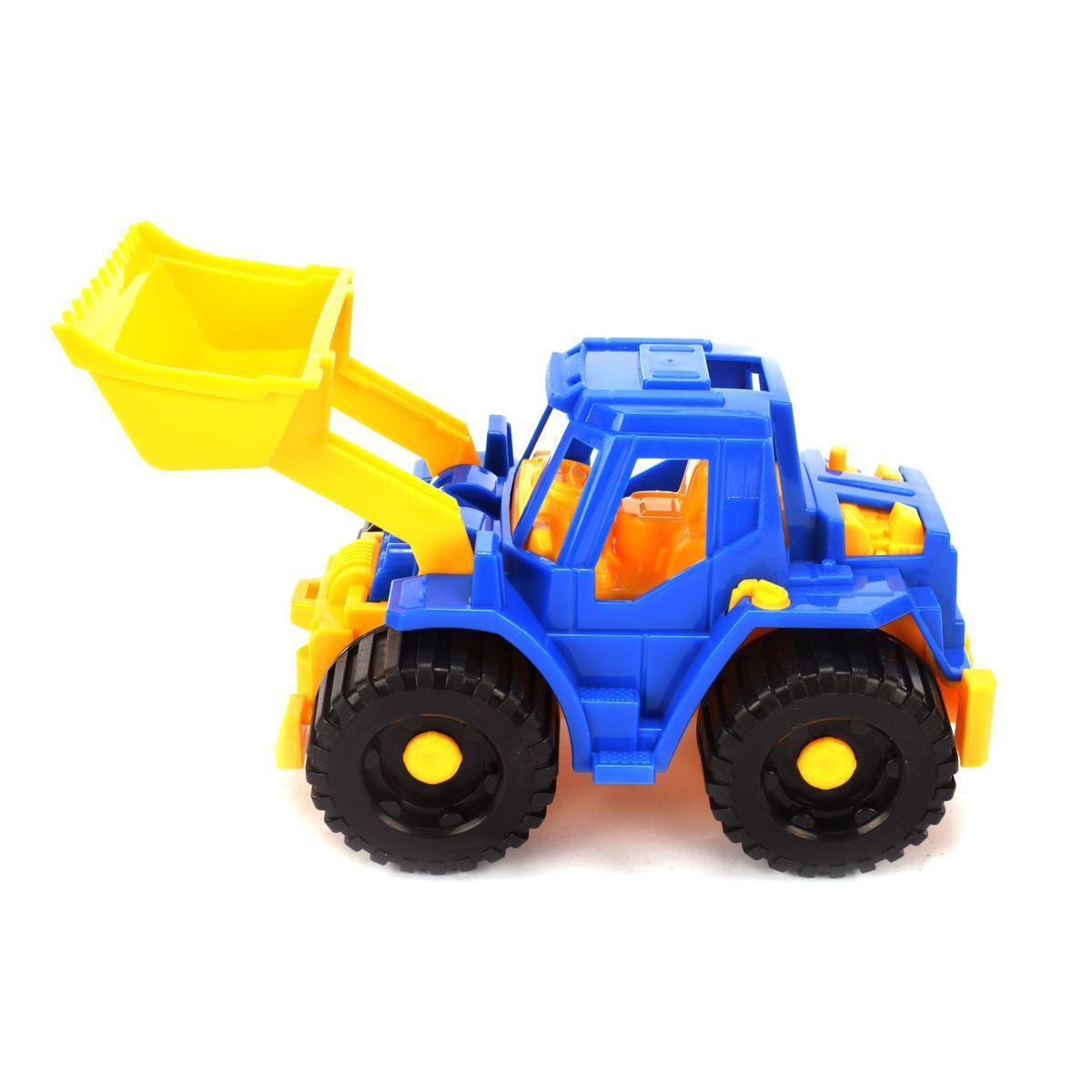 Яркая игрушка с подвижным ковшом и открытой кабиной станет незаменимым помощником в детских играх. Прочный пластиковый корпус выдерживает активное использование, а крупные рифленые колеса обеспечивают устойчивость на любой поверхности.