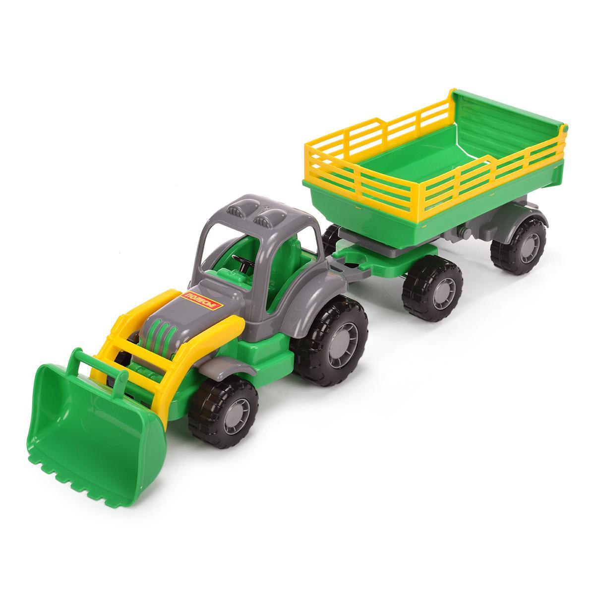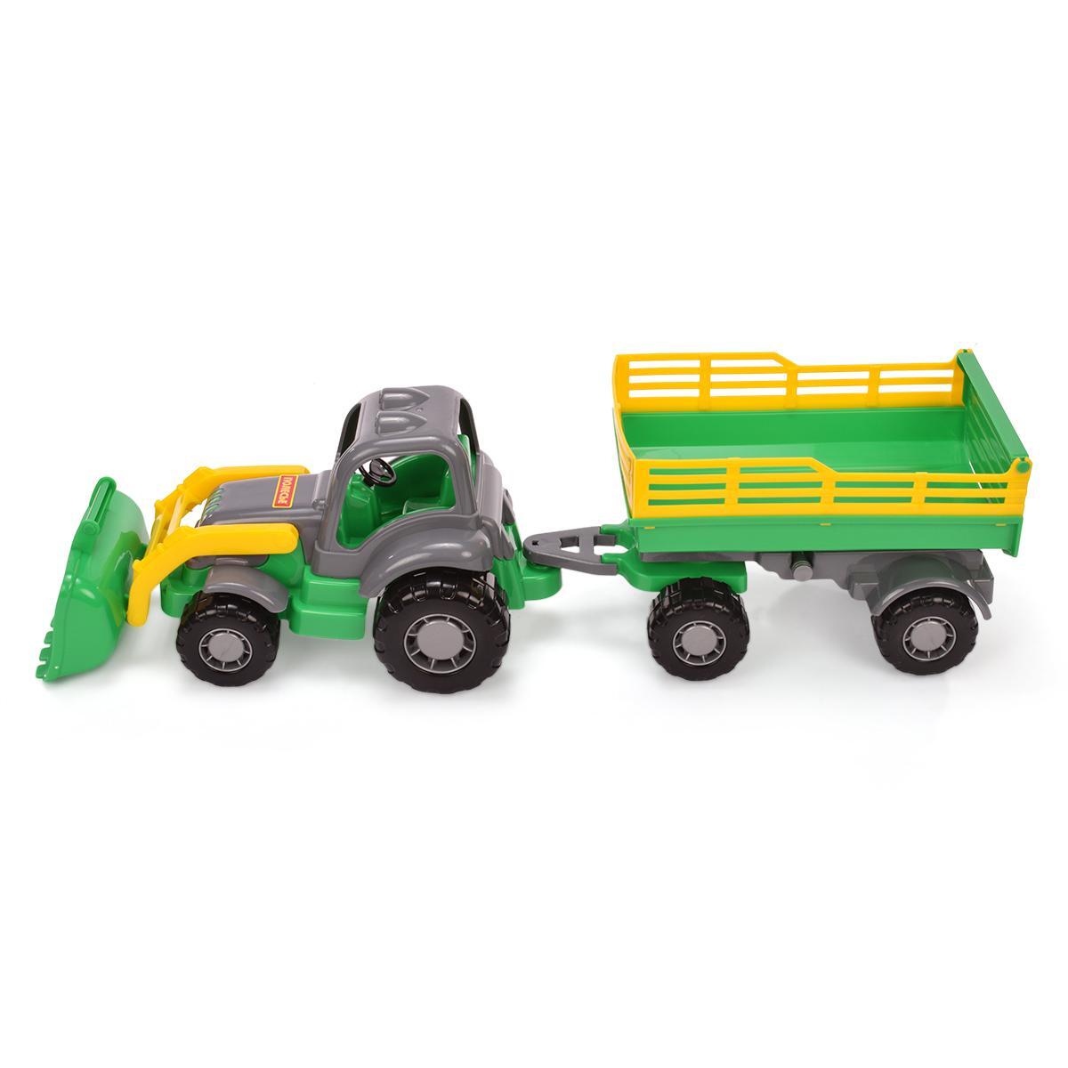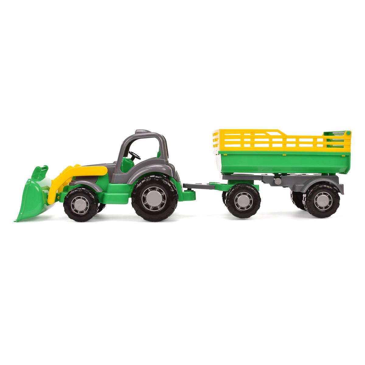 Игрушка с подвижным ковшом и съёмным прицепом погружает ребёнка в мир сельской техники. Прочный пластиковый корпус выдерживает активные игры, а крупные колёса с протекторами обеспечивают устойчивость на любой поверхности.