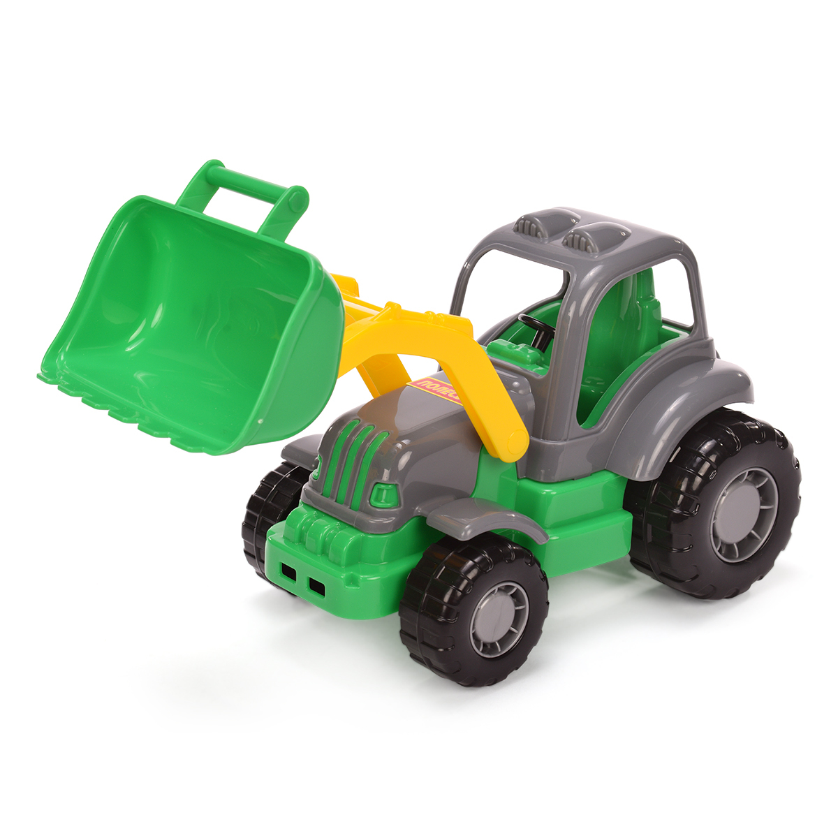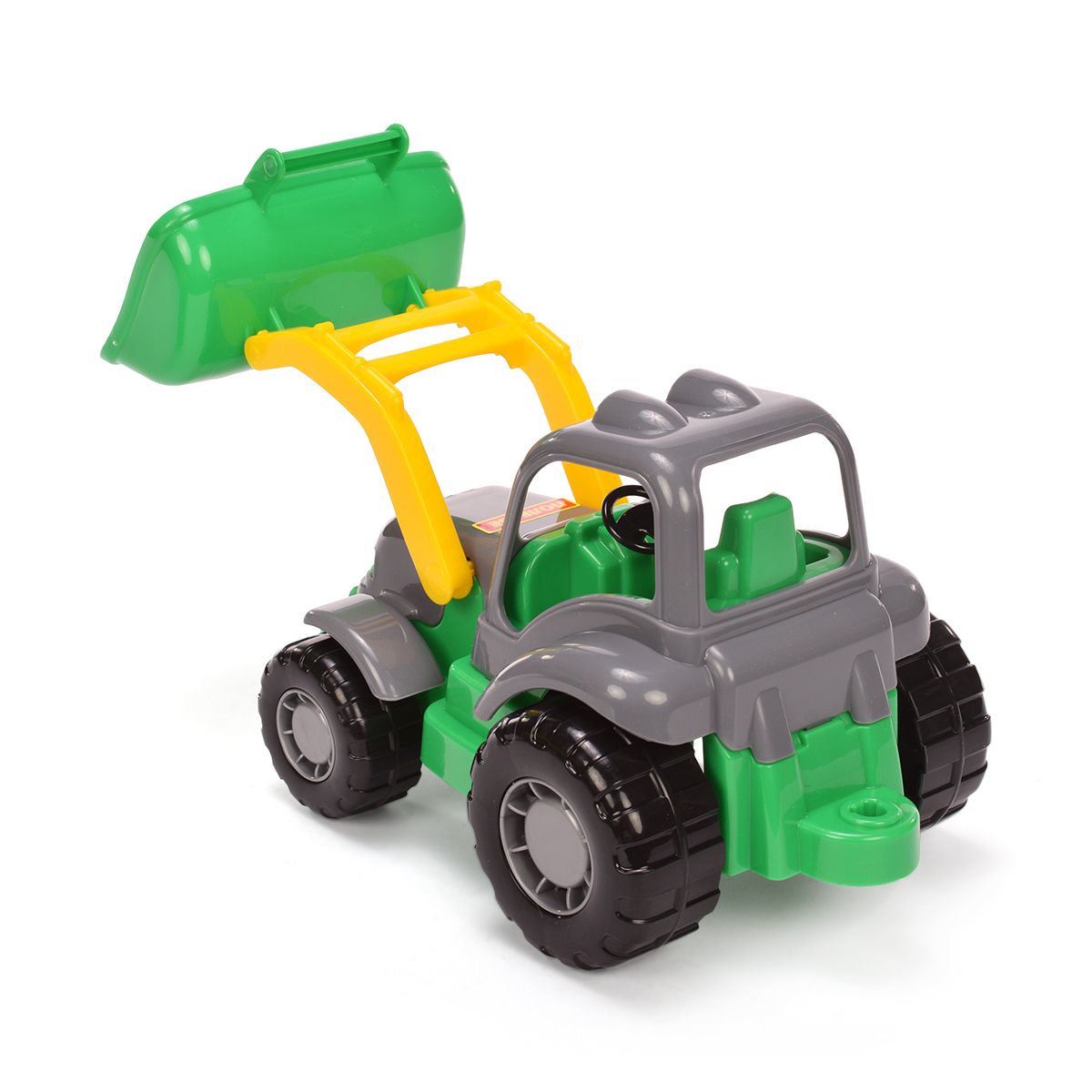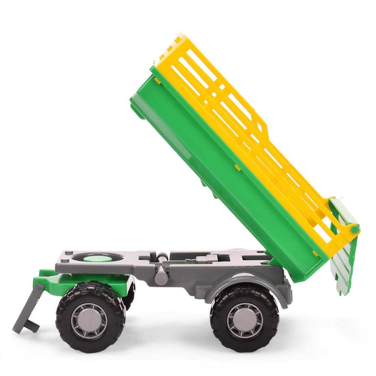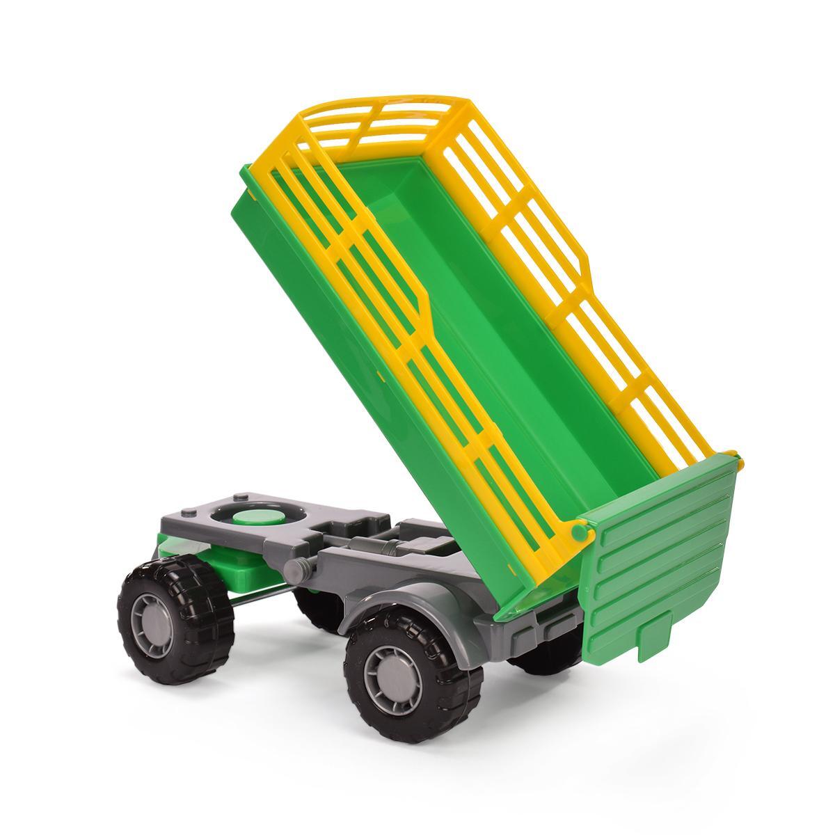 Игрушка с подвижным ковшом и съёмным прицепом погружает ребёнка в мир сельской техники. Прочный пластиковый корпус выдерживает активные игры, а крупные колёса с протекторами обеспечивают устойчивость на любой поверхности.
