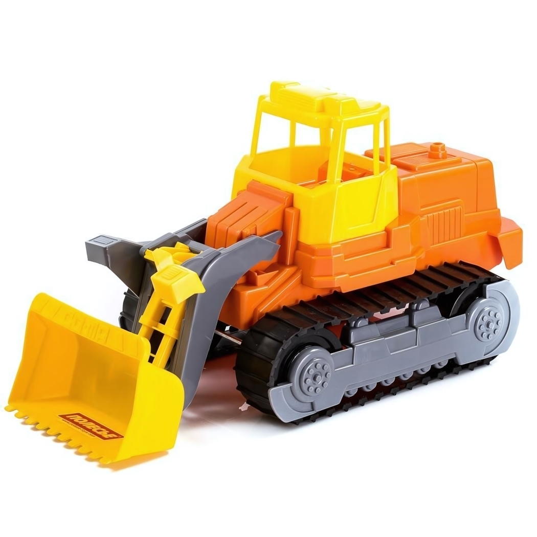 Игрушка выполнена в пропорциях настоящей техники: обтекаемый корпус с выраженной передней частью, серые гусеничные траки и поворотный ковш желтого цвета. Открывающаяся кабина позволяет посадить фигурку водителя (продается отдельно), создавая полную имитацию рабочего процесса.
