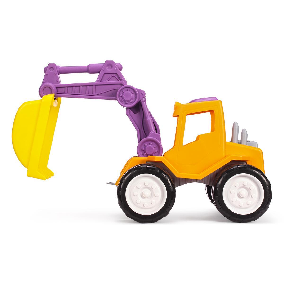 Трактор-экскаватор детский с подвижным ковшом, полимер, желто-фиолетовый дизайн Fancy Baby