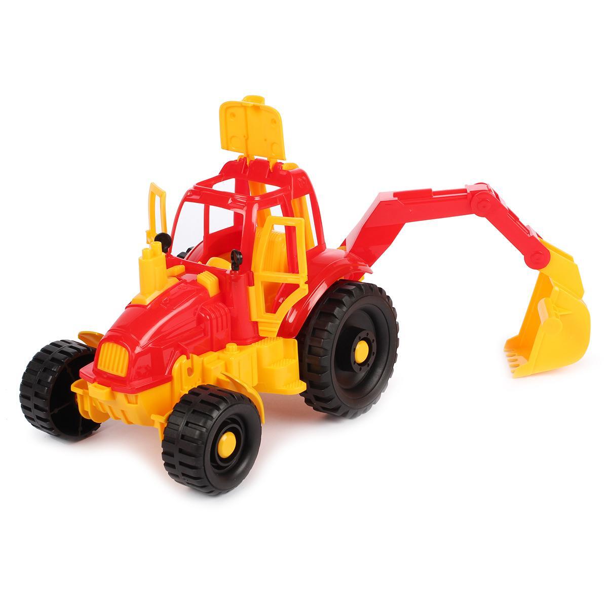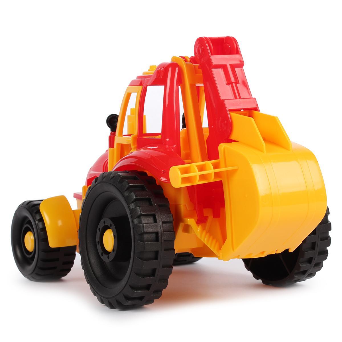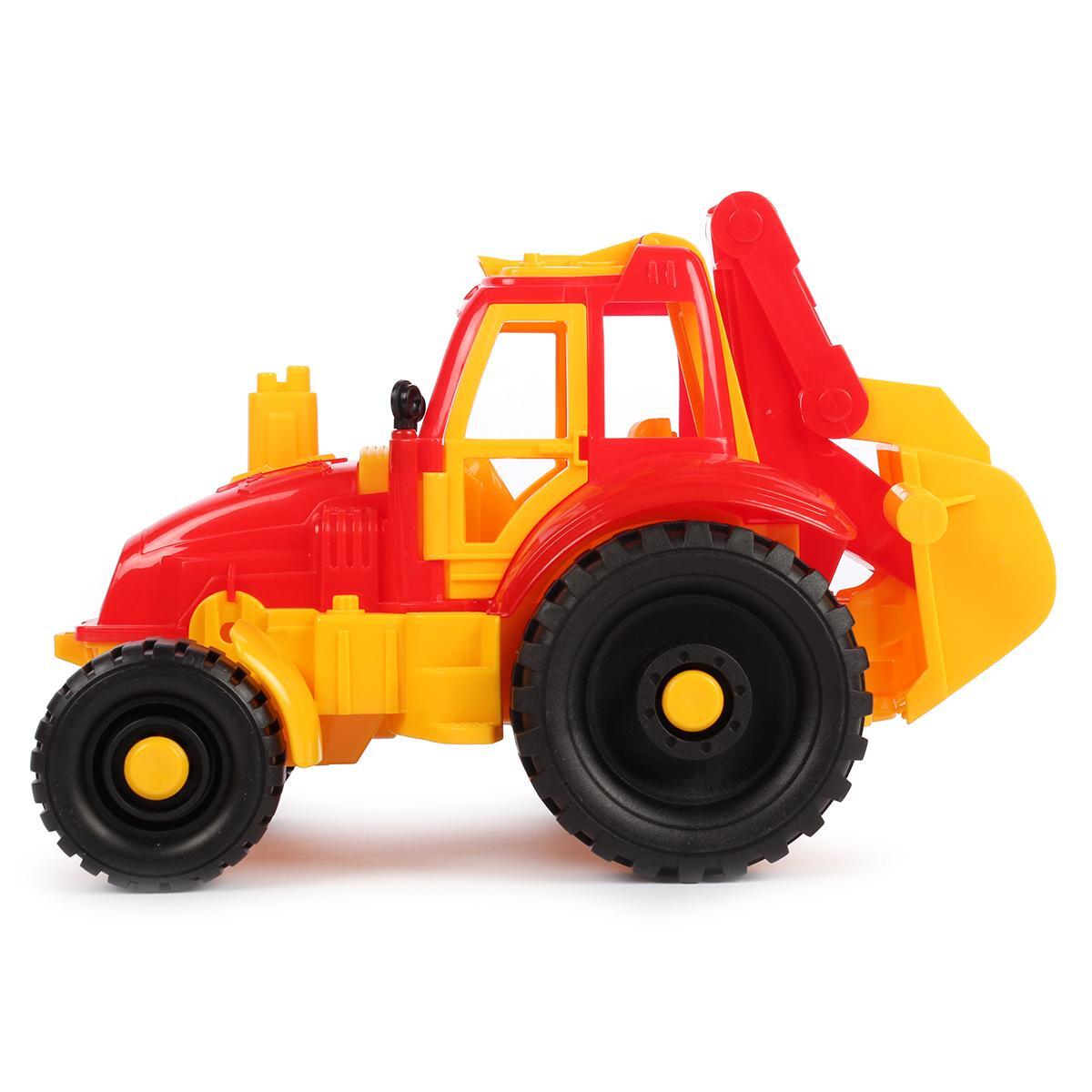 Игрушечный трактор с ковшом Нордпласт, подвижные элементы, красный/желтый, прочный пластик