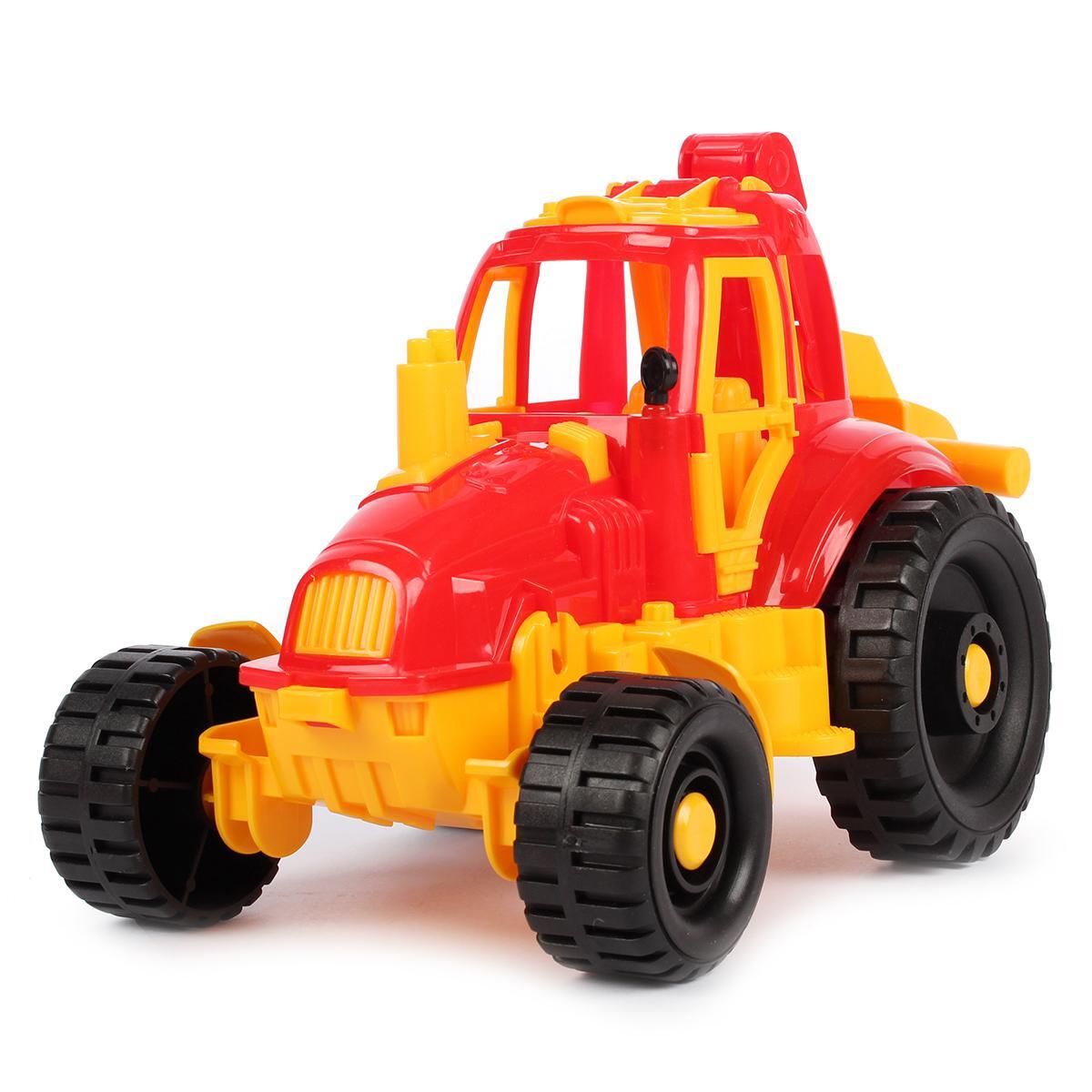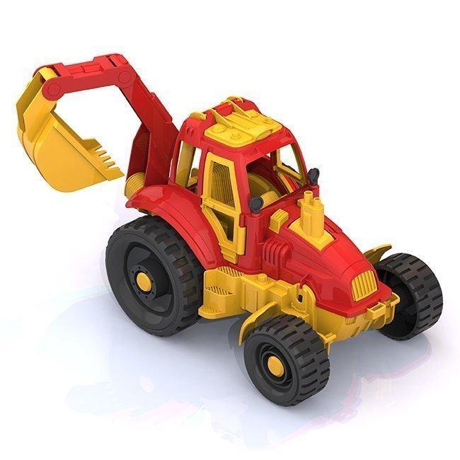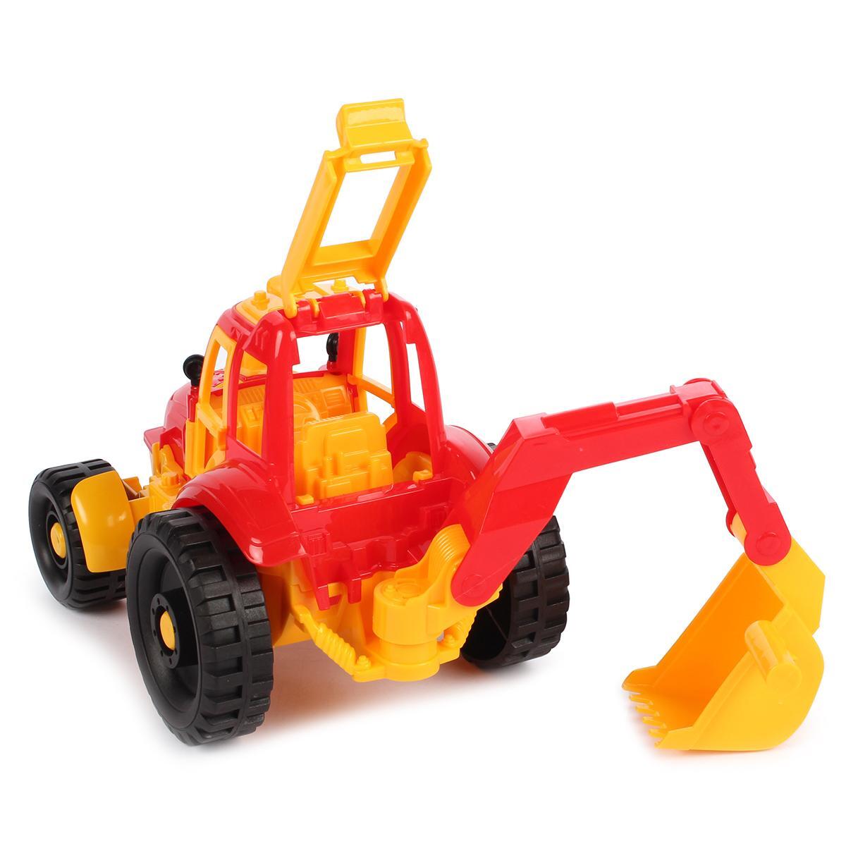 Игрушечный трактор с ковшом Нордпласт, подвижные элементы, красный/желтый, прочный пластик
