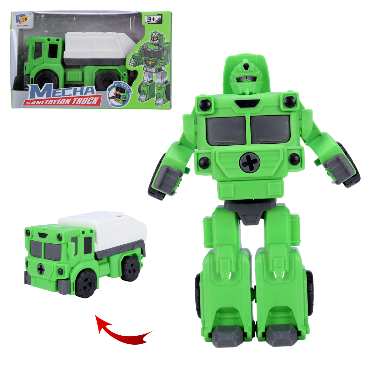 Представляем робота-трансформера 'Mecha Sanitation Truck' — это не просто игрушка, а целый мир фантазий и игр. Маленький механик сможет собрать грузовик, а затем превратить его в мощного робота всего за несколько движений.