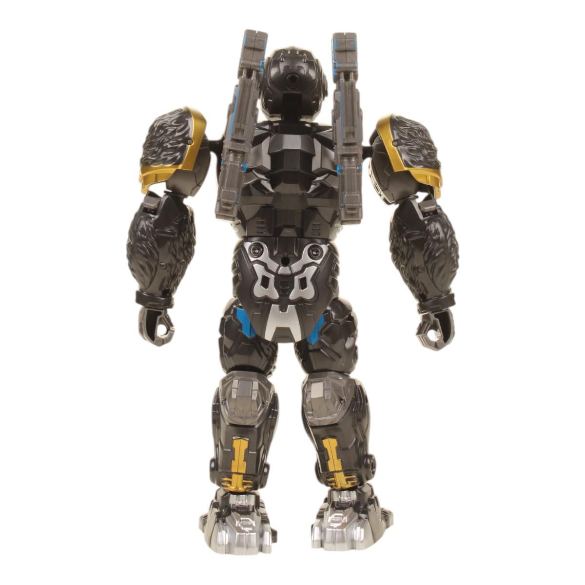 Размер в упаковке: 27х11.5х32.3 см позволяет удобно хранить или перевозить игрушку. Яркий дизайн с серебристыми акцентами и светоотражающими элементами создаёт эффект боевого робота из фантастических вселенных.