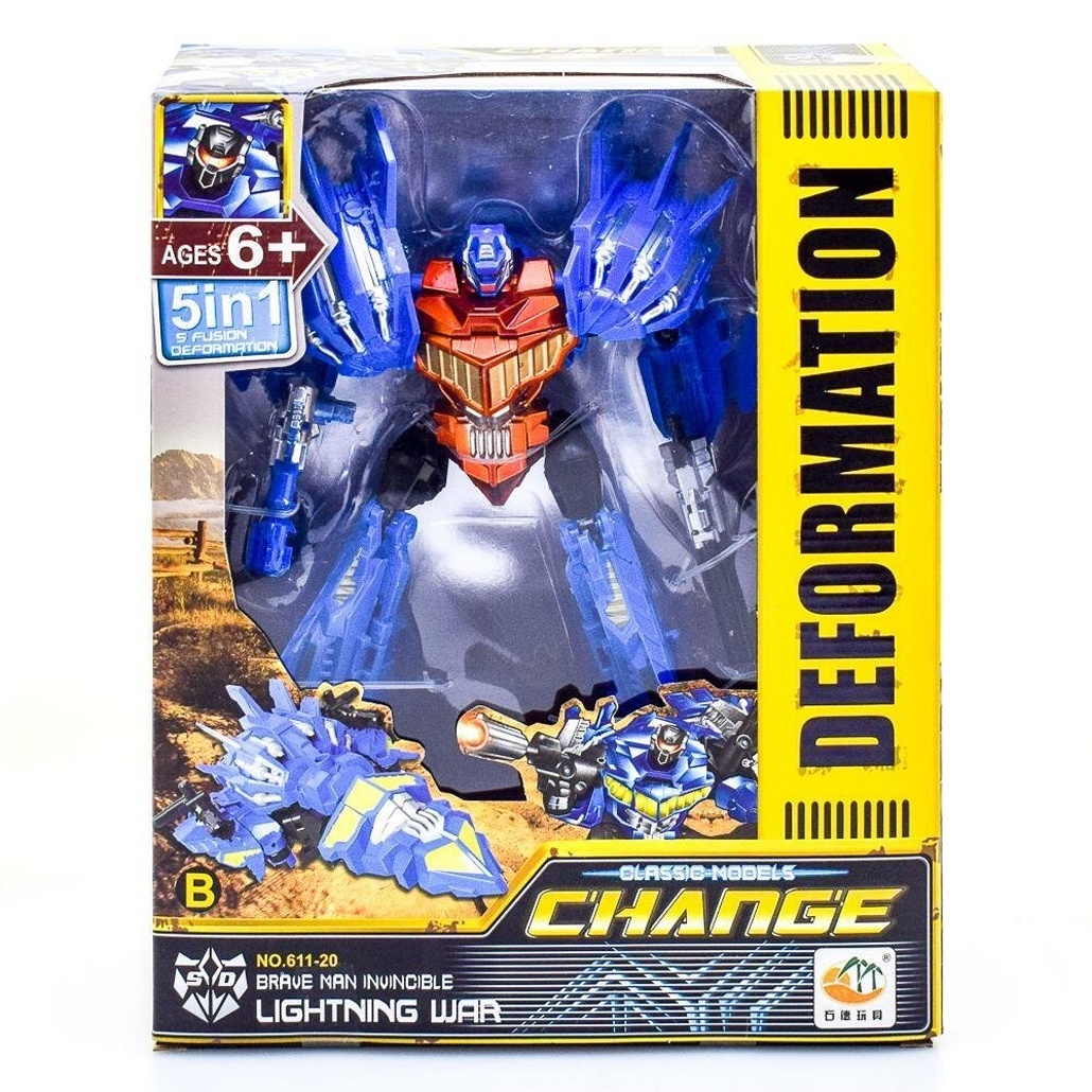 Игрушка изготовлена из качественного пластика, безопасного для детей старше 6 лет. Прочный материал и продуманная конструкция обеспечивают долговечность даже при активном использовании. Размеры трансформера подобраны специально для комфортной игры детской рукой.