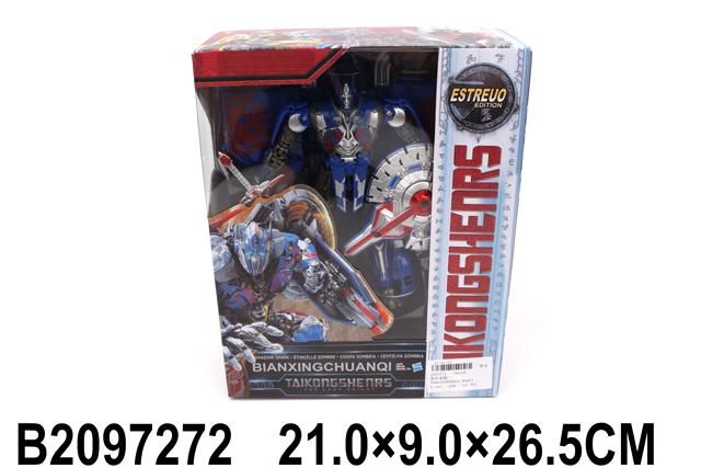 Игрушка подходит для детей от 5 лет и старше, обеспечивая безопасное и интересное времяпрепровождение. Размер фигурки — 26,5 см, что позволяет удобно держать ее в руках и использовать в различных играх. Трансформер оснащен оружием, щитом и подвижными суставами, что дает возможность создавать разнообразные боевые сцены и позы.
