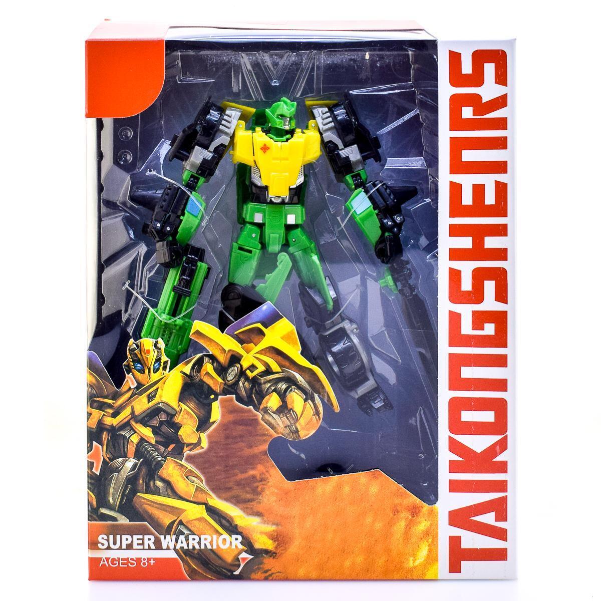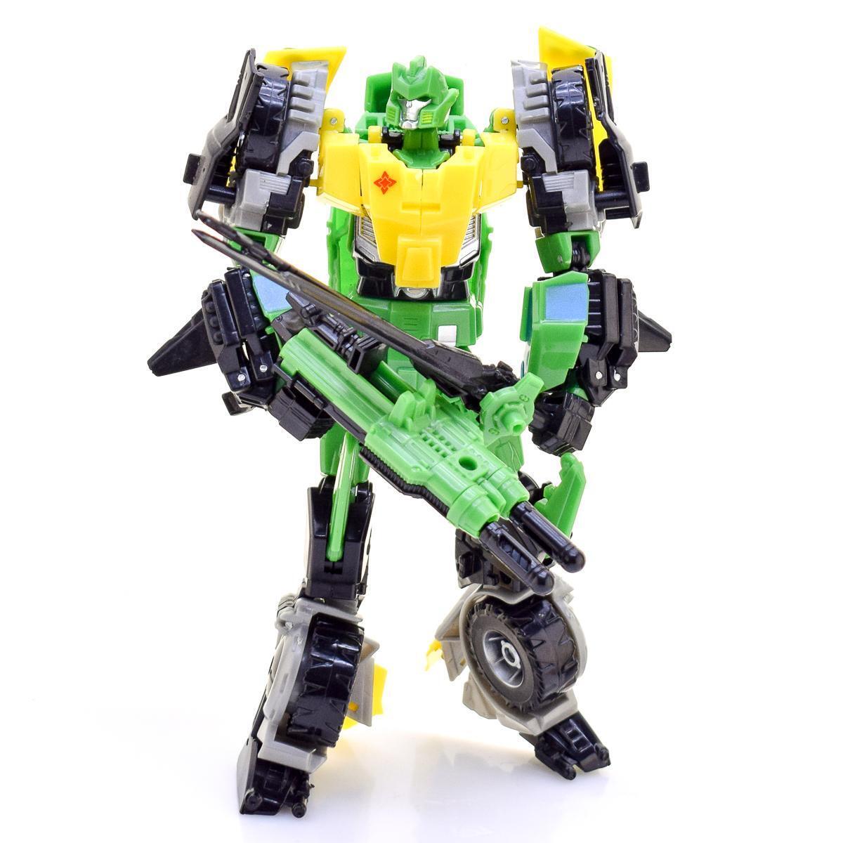 Трансформер-робот зеленый желтый с оружием, механический дизайн, для детей 8+