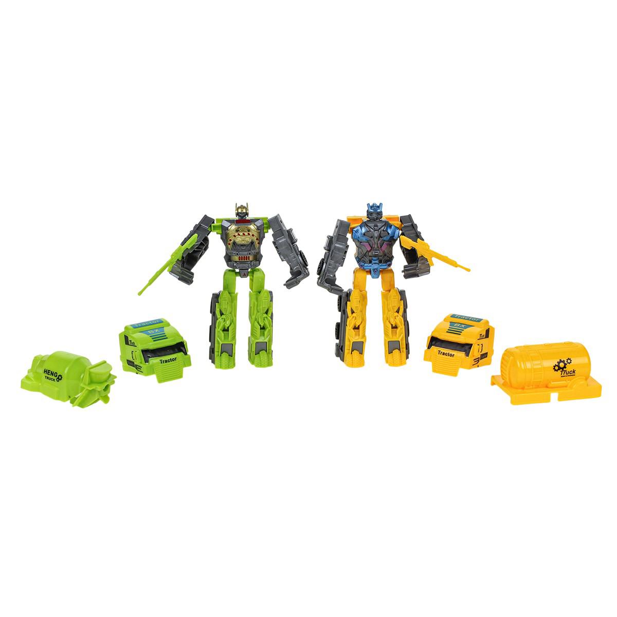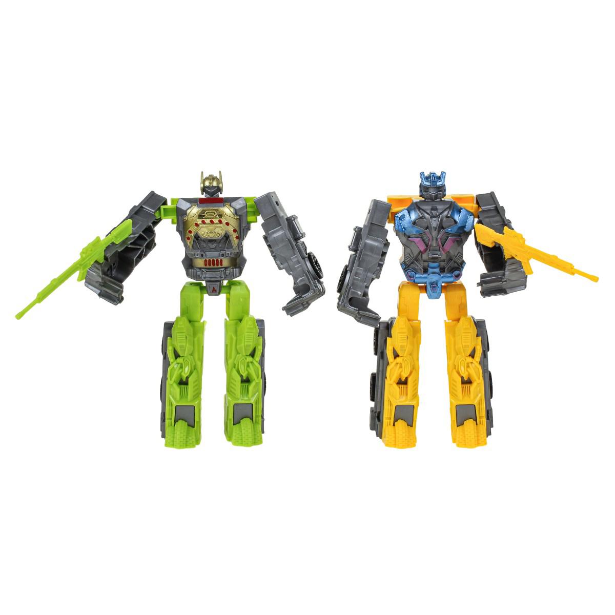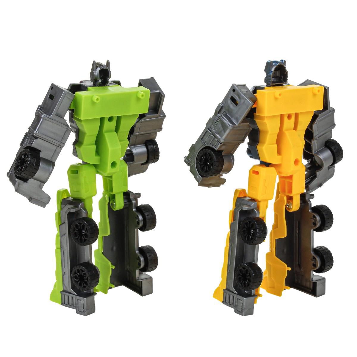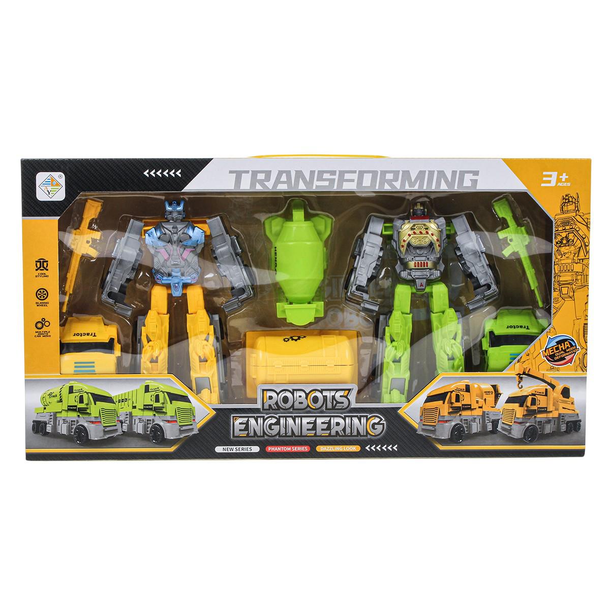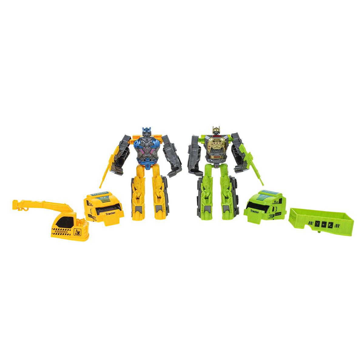 - Два крупных трансформирующихся робота: один жёлтого, другой салатово-зелёного цвета с детализированными элементами.
