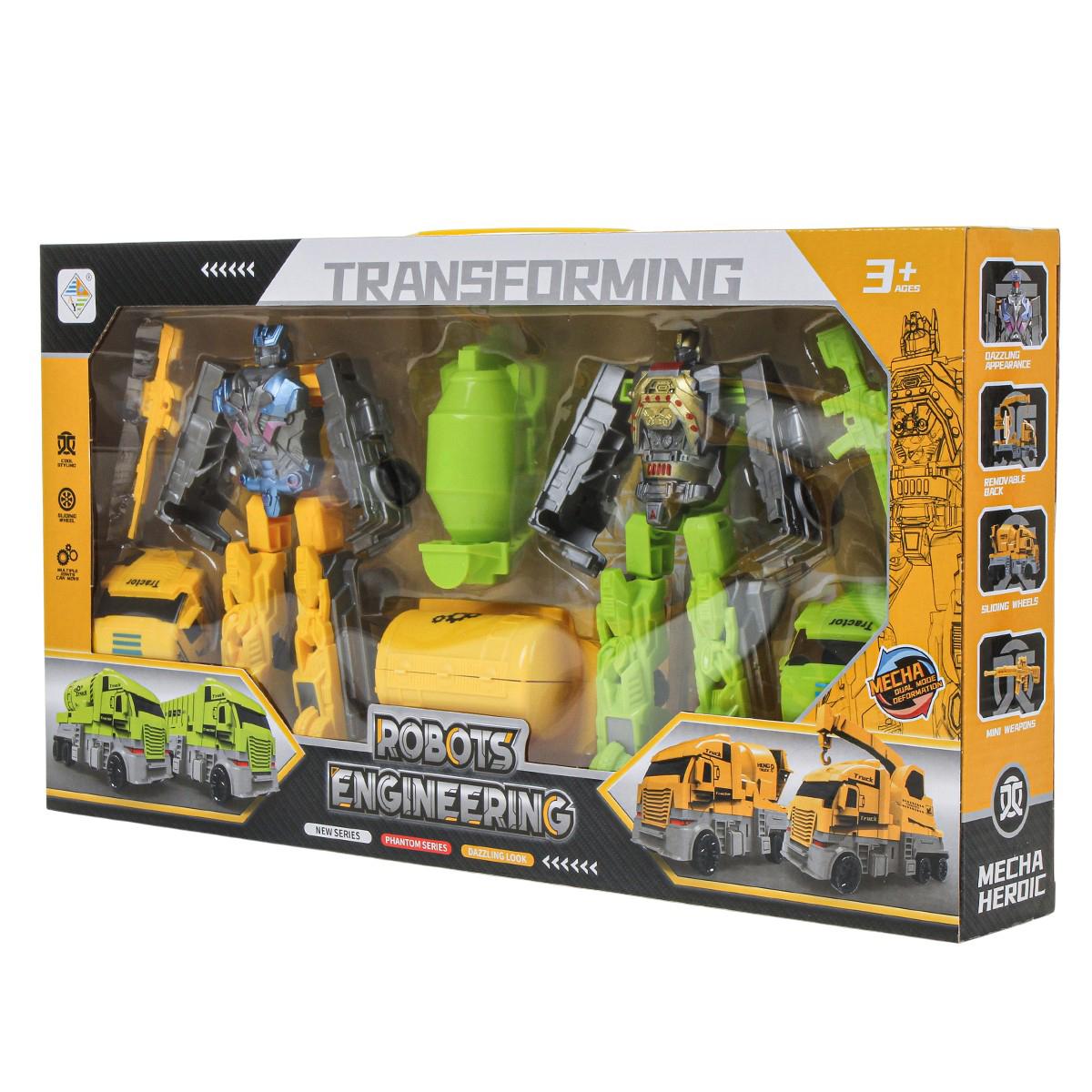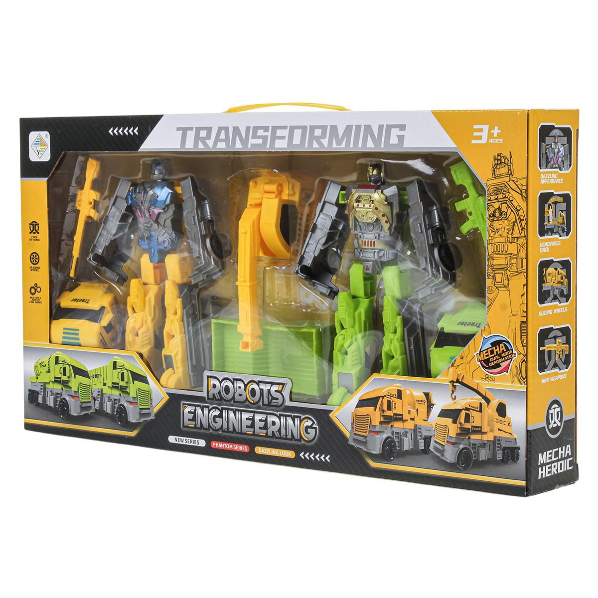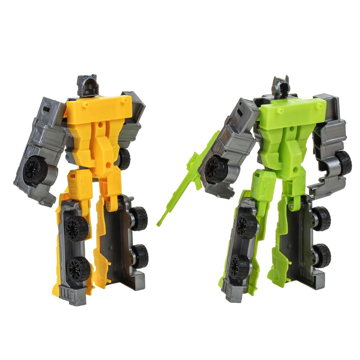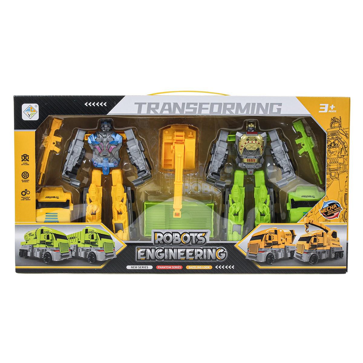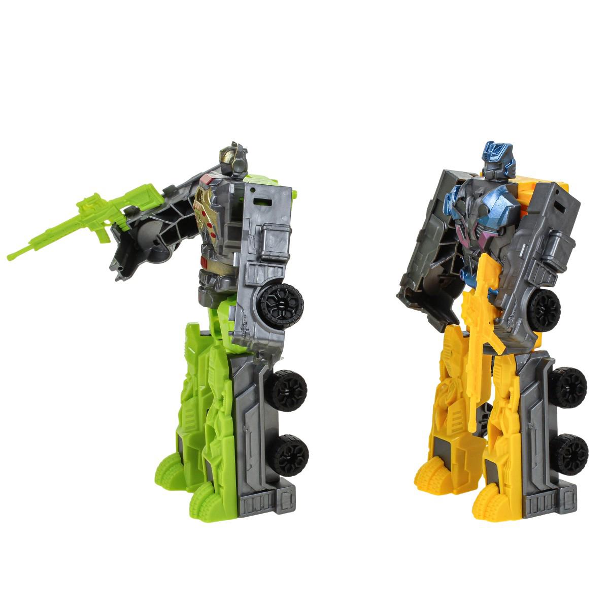 - Два крупных трансформирующихся робота: один жёлтого, другой салатово-зелёного цвета с детализированными элементами.