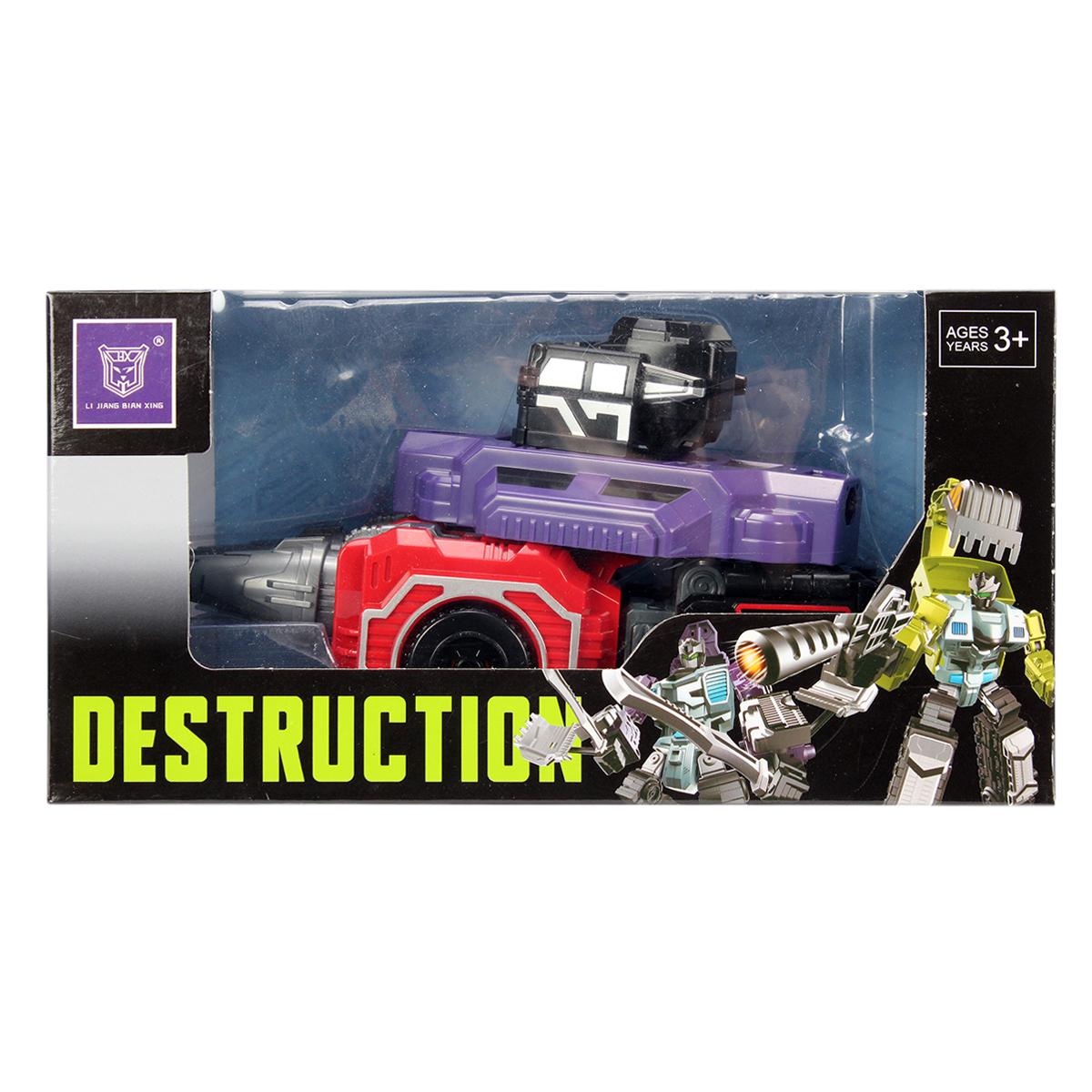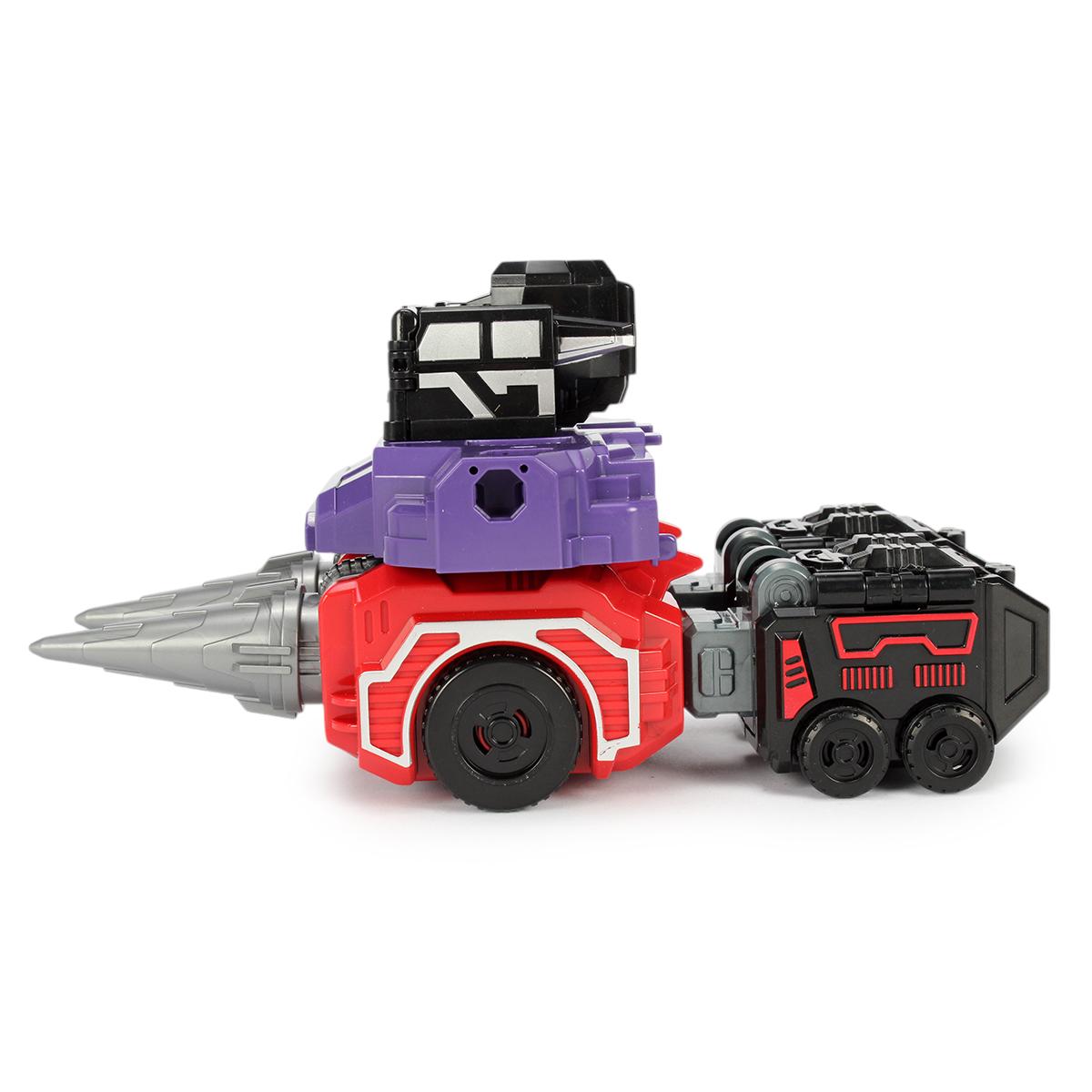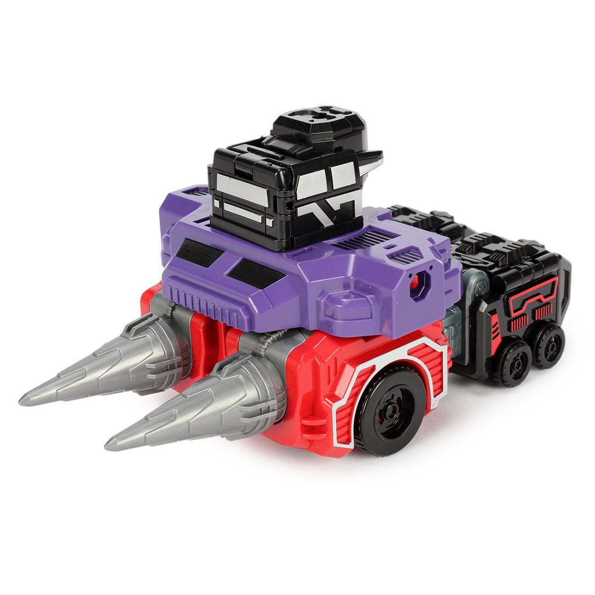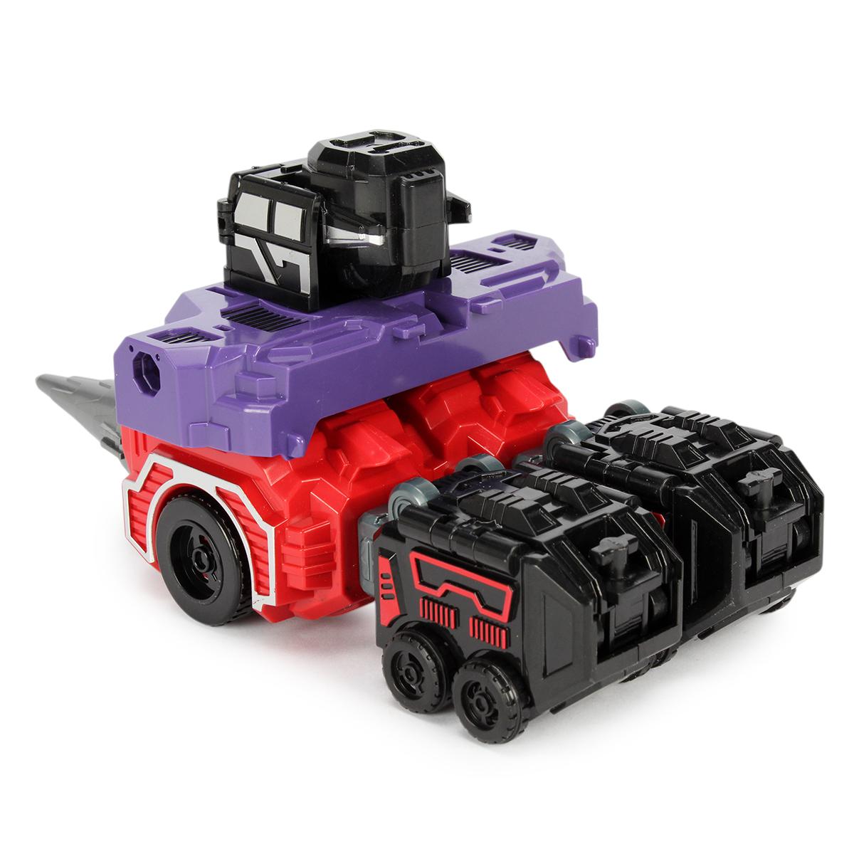 Игрушка имеет многоцветную окраску с фиолетовыми, красными и черными элементами, что делает ее уникальной. Механизм трансформации прост в использовании, что позволяет детям легко справляться с ним. Трансформер-робот станет отличным дополнением к коллекции игрушек вашего ребенка и подарит множество часов увлекательной игры.
