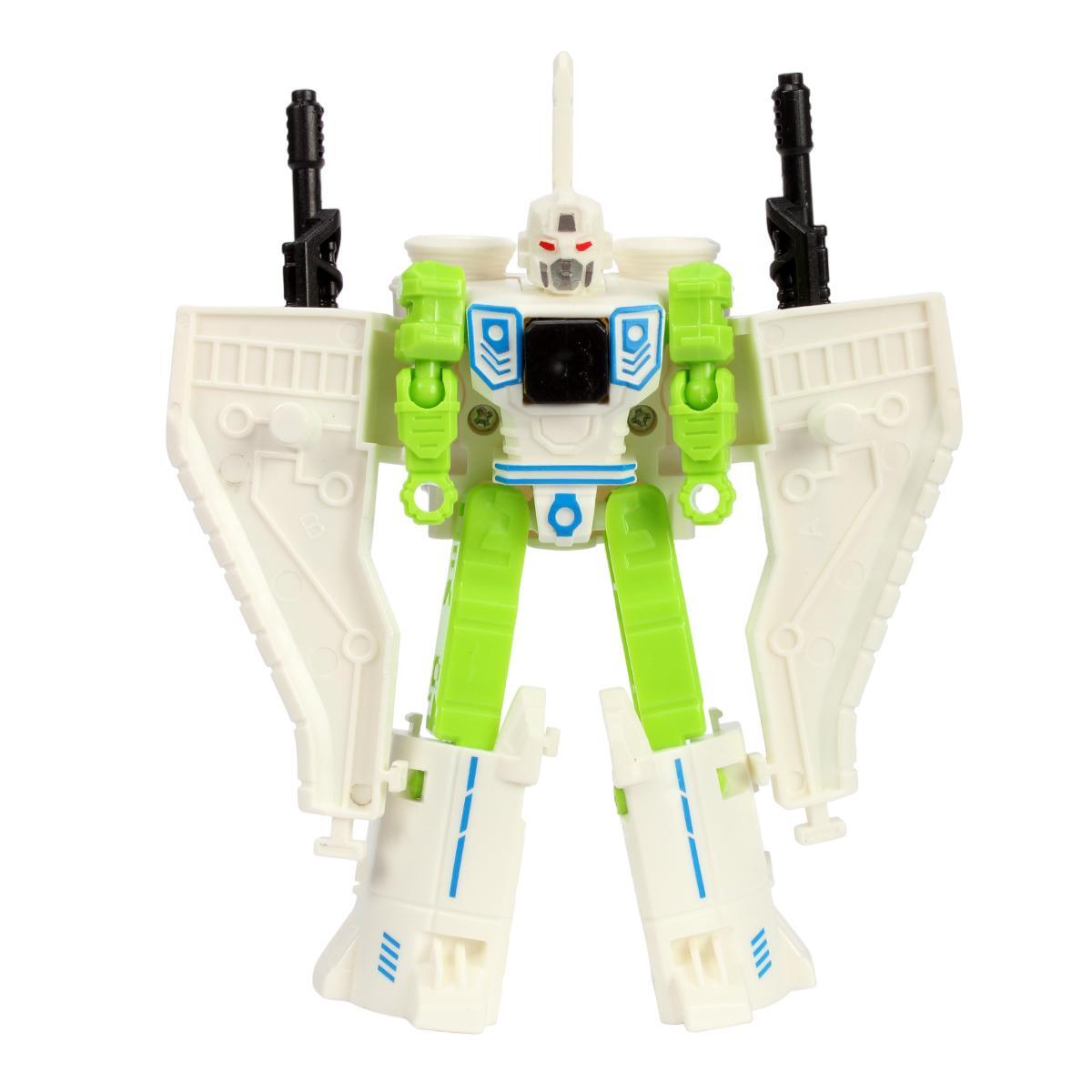 Этот трансформер-самолет исполнен в ярком дизайне и идеально подходит для юных любителей приключений и космоса. Он легко превращается из робота в самолет, вызывая у детей восторг и интерес к игре. В комплект входит одна фигурка робота с механическими деталями, выполненными из прочного пластика, что обеспечивает долговечность и безопасность при использовании.