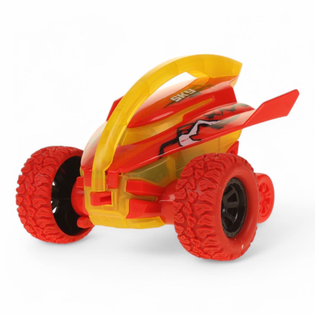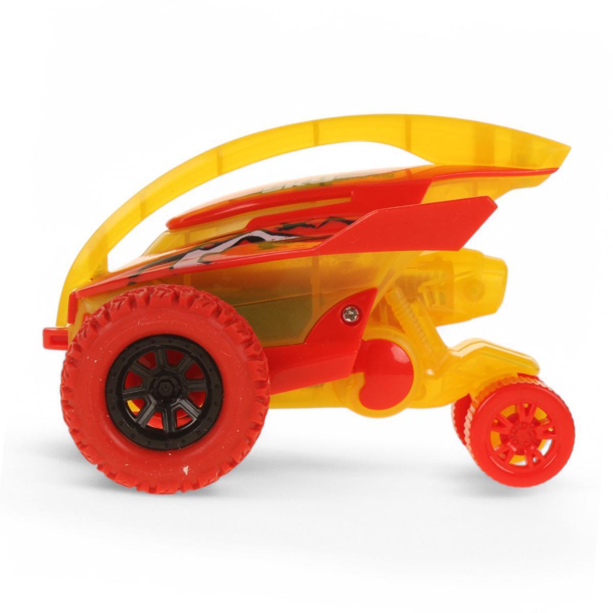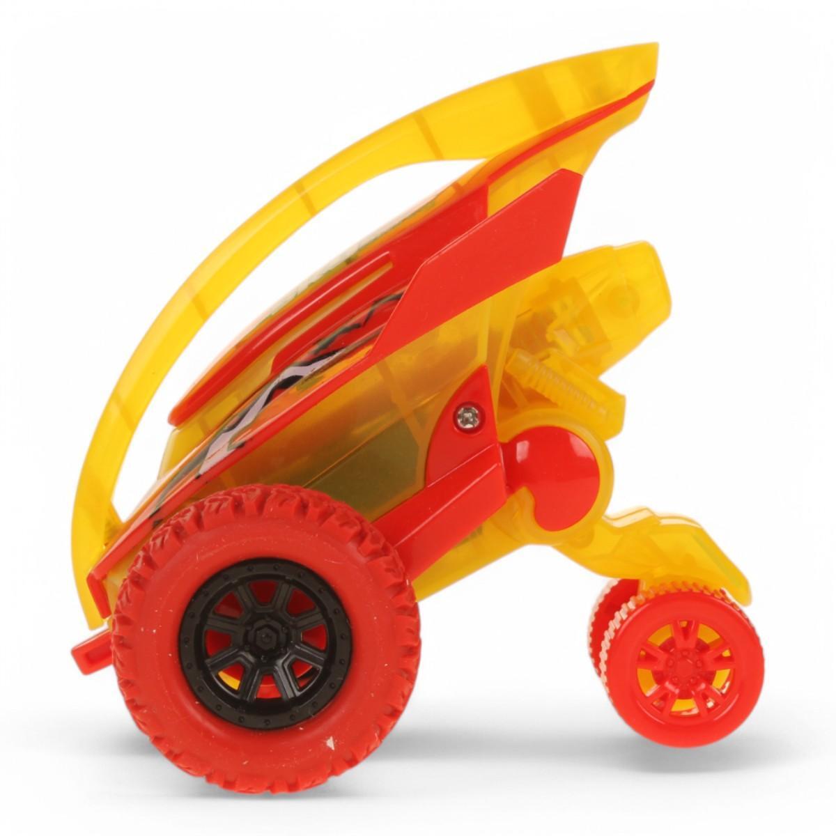 Обтекаемый кузов 11 см с ярким дизайном в желто-красной гамме. Рифленые колеса из износостойкого пластика обеспечивают устойчивость при выполнении трюков. Возможность переворотов (Tumble) и езды по бездорожью (Off-Road) делает каждый день игры уникальным.