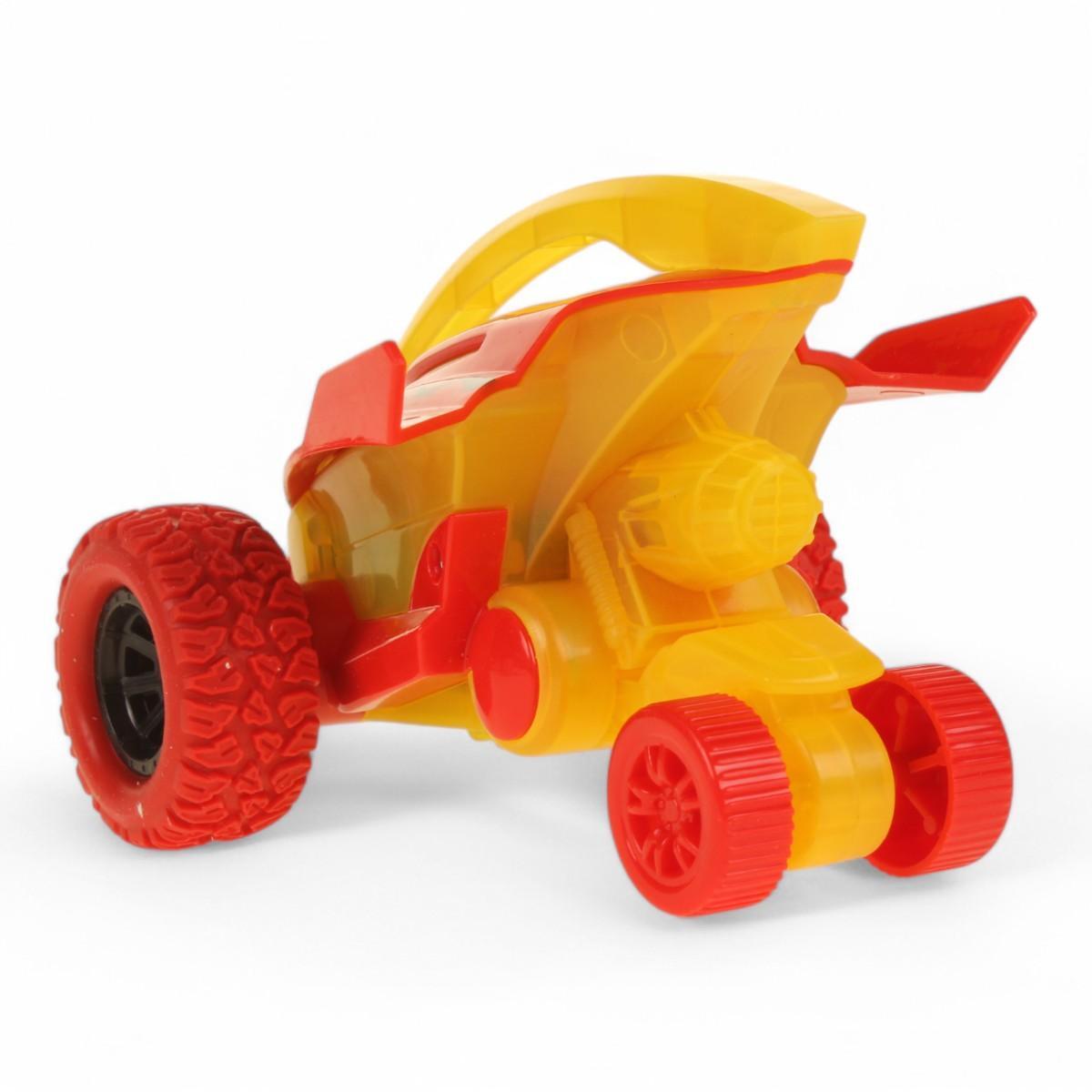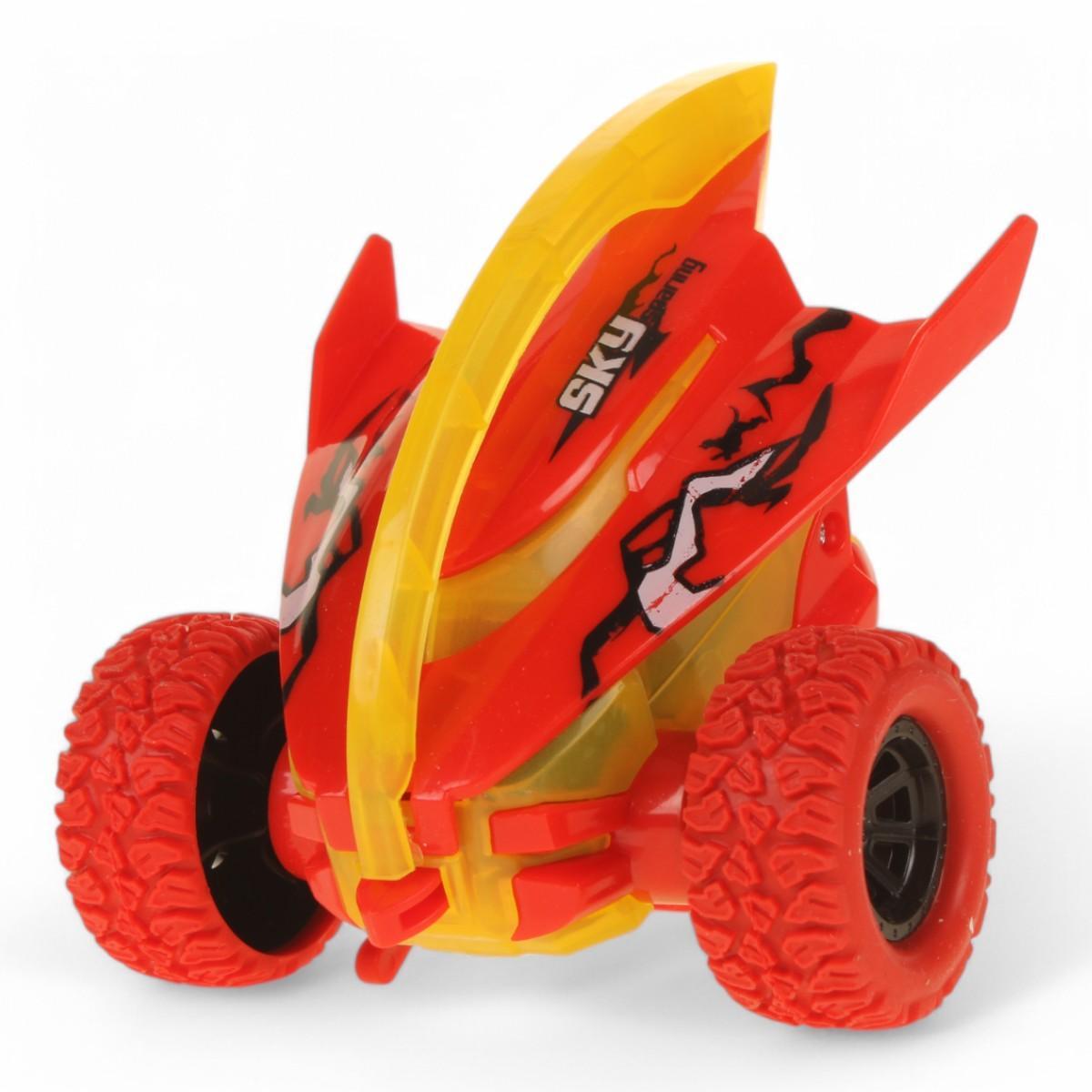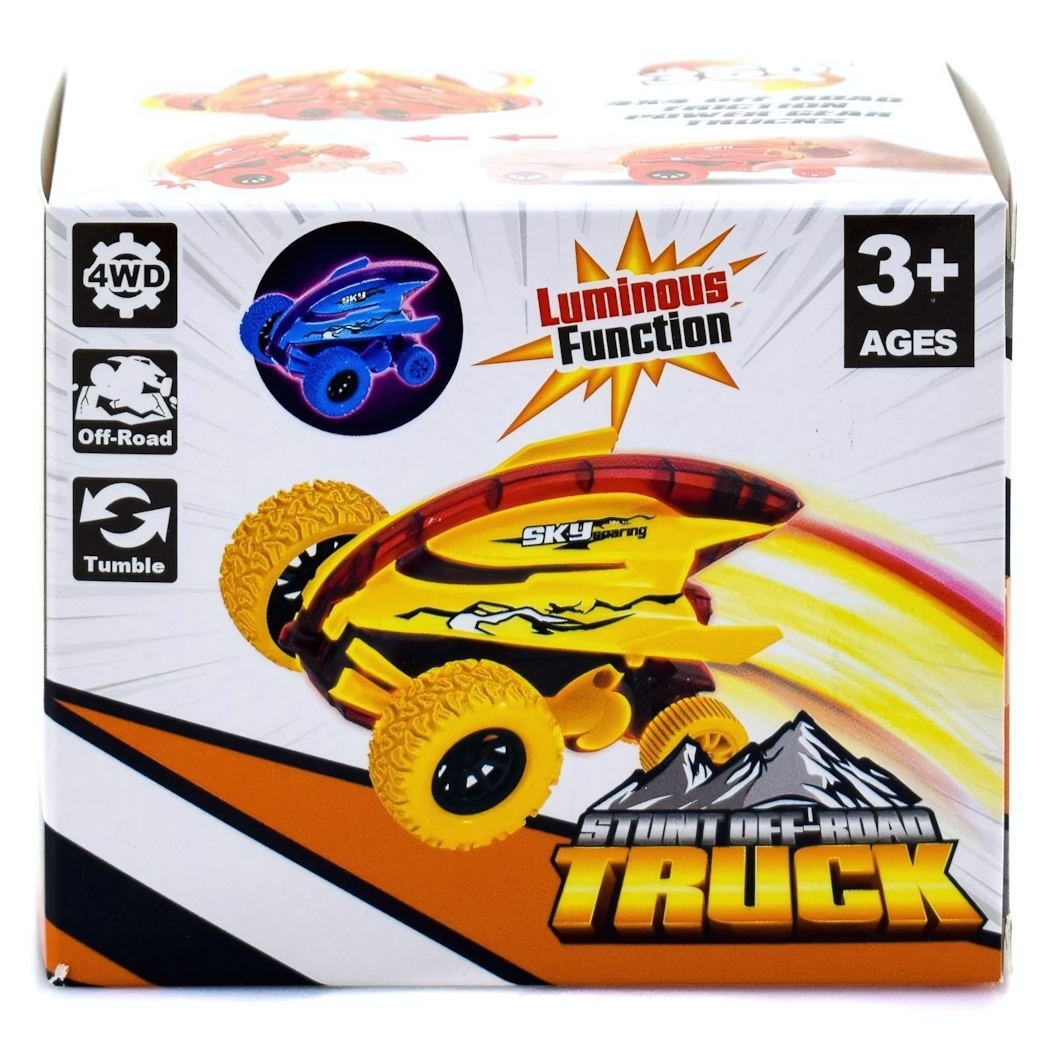 Обтекаемый кузов 11 см с ярким дизайном в желто-красной гамме. Рифленые колеса из износостойкого пластика обеспечивают устойчивость при выполнении трюков. Возможность переворотов (Tumble) и езды по бездорожью (Off-Road) делает каждый день игры уникальным.