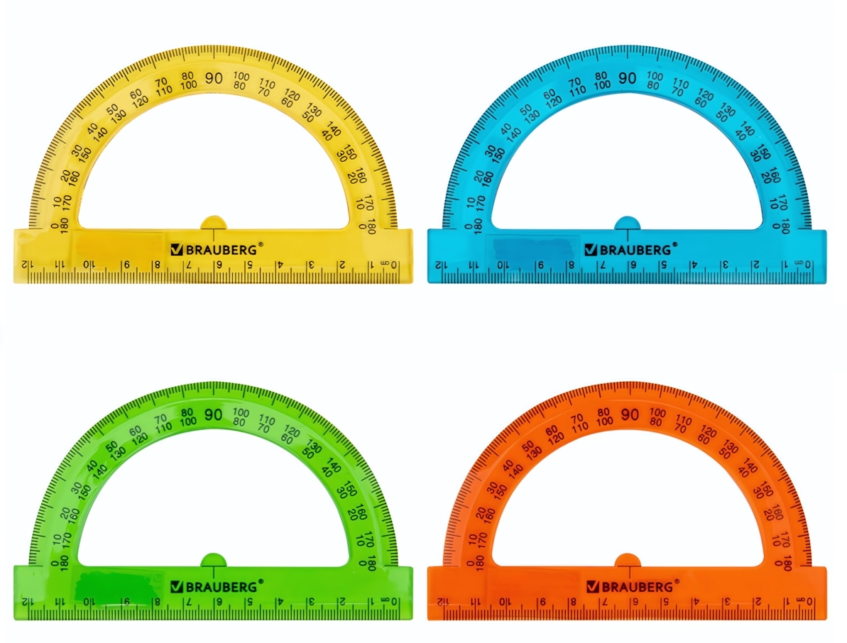 Транспортир 'BRAUBERG' станет надежным помощником в чертежных работах и геометрических построениях. Его яркий неоновый дизайн не только радует глаз, но и помогает сосредоточиться на работе.