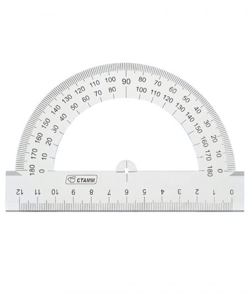 Транспортир "СТАММ" 180°, 12 см, прозрачный, полистирол, точные измерения