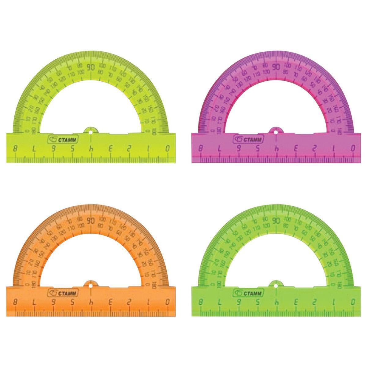Транспортир СТАММ Neon Crystal с флуоресцентными оттенками сочетает профессиональную точность и удобство ежедневного использования. Идеален для школьников, студентов и специалистов, работающих с чертежами.