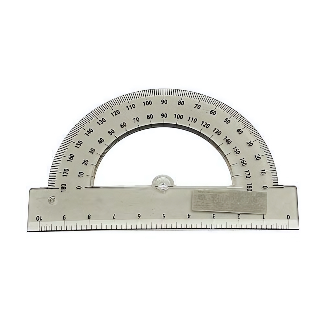 Прозрачный транспортир с двойной шкалой — ваш надёжный помощник в черчении и обучении. Идеальная геометрия и чёткая градуировка обеспечивают профессиональную точность каждого измерения.