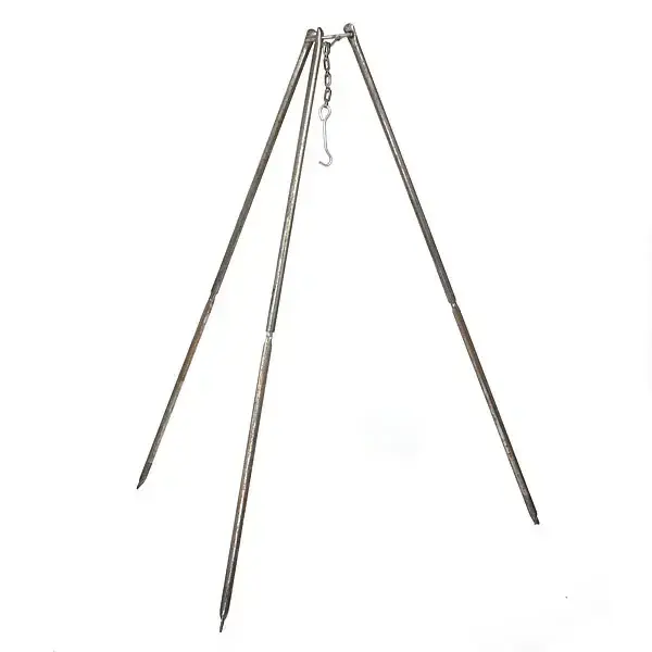Металлическая тренога с чехлом — идеальный помощник для приготовления еды в походных условиях. Легко устанавливается над костром и выдерживает вес котлов до 10 литров.