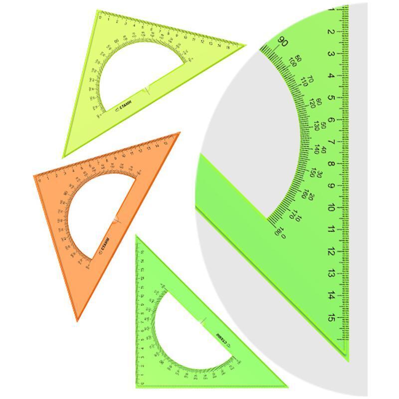 Треугольник чертежный «СТАММ Neon Crystal», 45°, 16 см, транспортир, прозрачный пластик, неоновые цвета