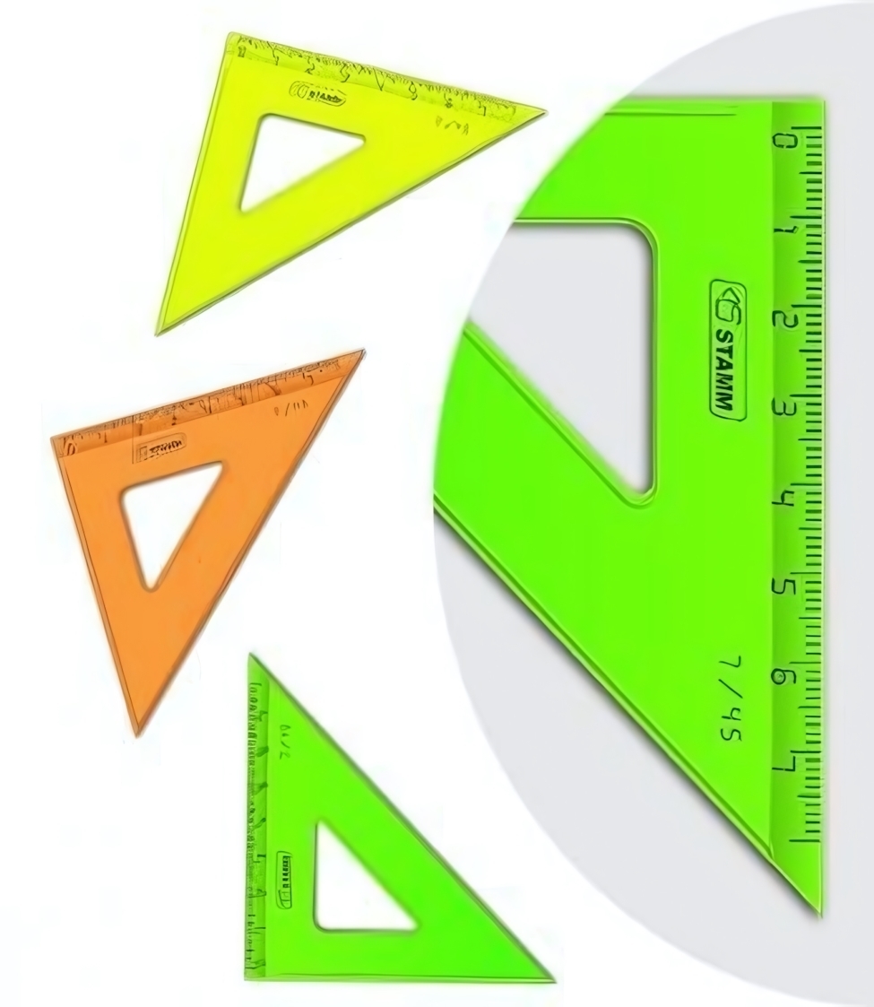 Треугольник СТАММ Neon имеет угол 45° и длину шкалы 7 см. Выполнен из прозрачного полистирола в ассортименте неоновых цветов. Компактный размер позволяет легко носить его с собой в пенале или сумке.