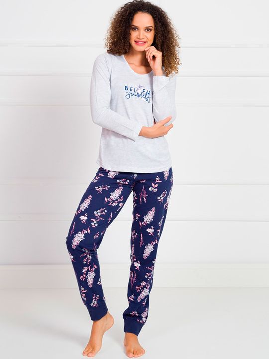 Трикотажный комплект пижама с брюками, размер L, цвет розовый, принт 'BELIEVE yourself', 70% хлопок