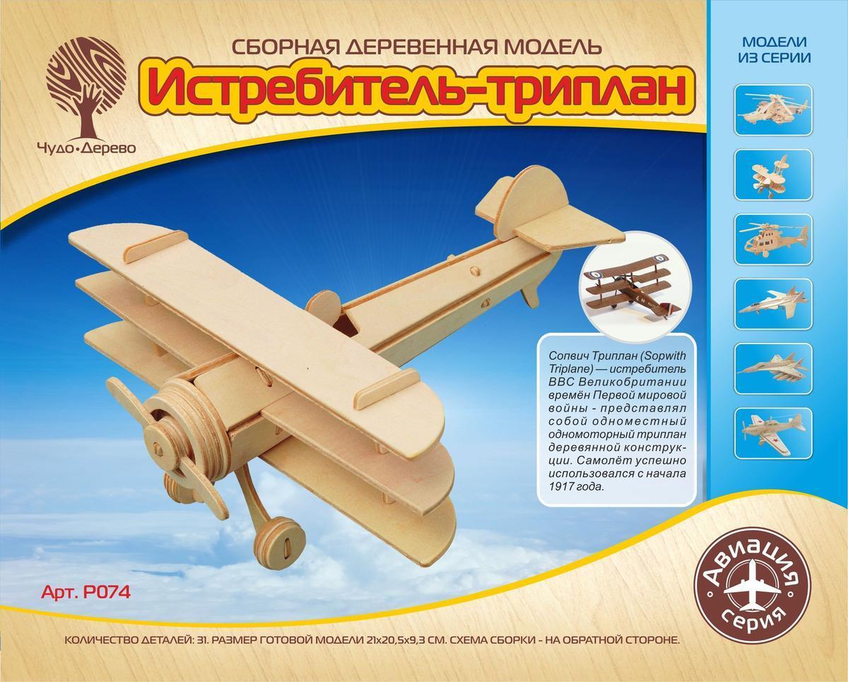 Сборная модель самолёта «Триплан» для развития моторики, 31 деталь, дерево, 21х20,5х9,3см
