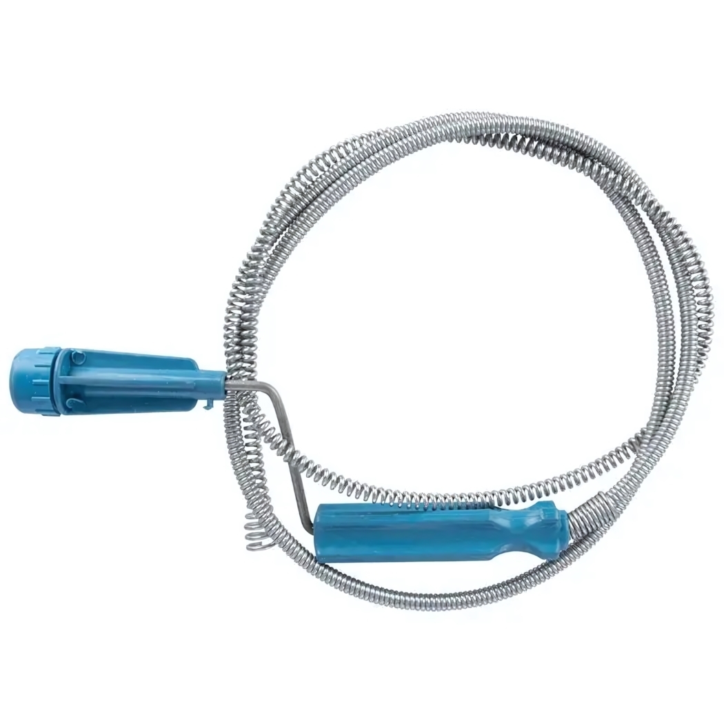 Витая металлическая основа обеспечивает повышенную прочность и устойчивость к деформациям. Пластиковый наконечник с насечками предотвращает повреждение труб во время чистки, а эргономичная ручка гарантирует удобный захват даже в перчатках.
