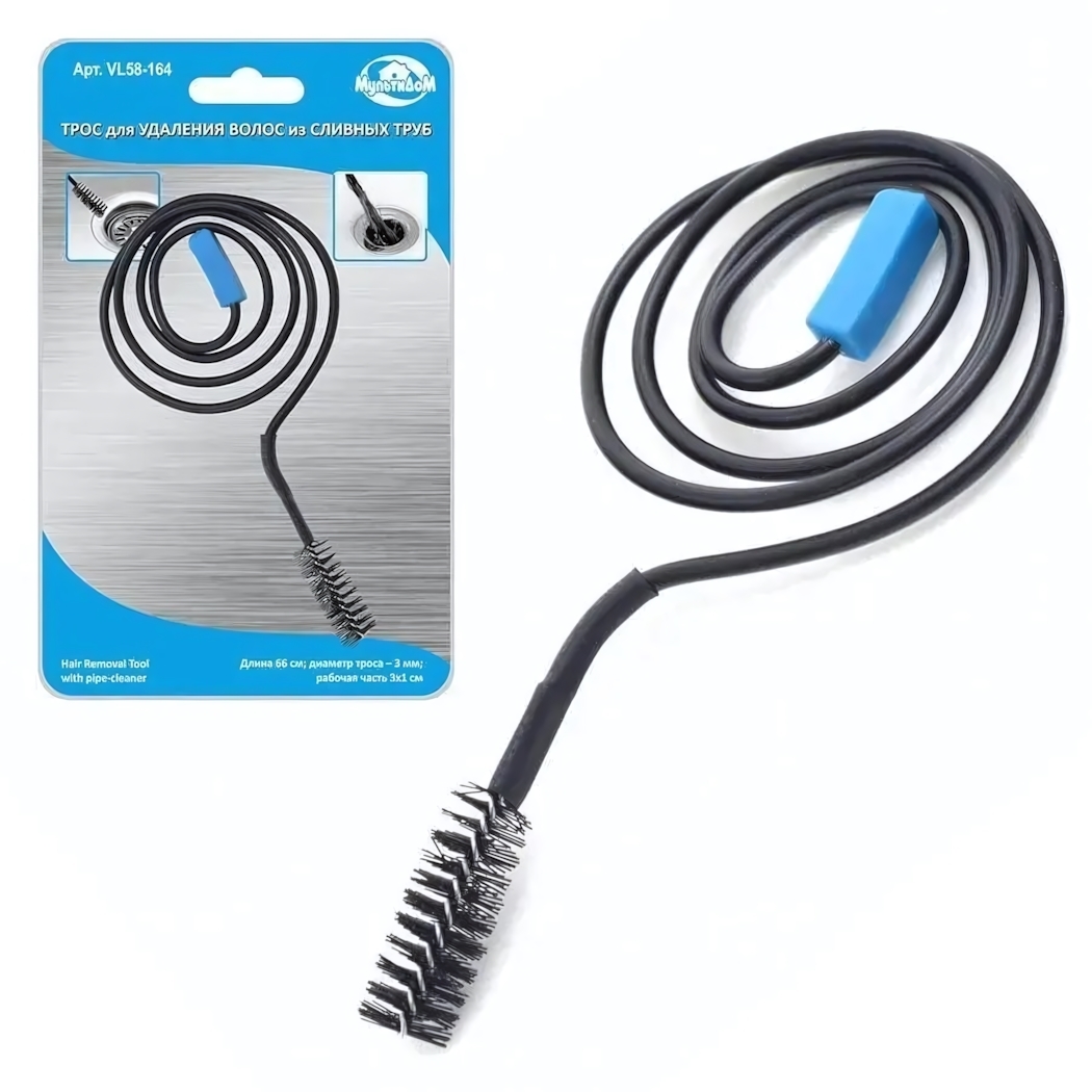Трос MultiDom длиной 66 см специально разработан для быстрого и гигиеничного удаления волос, шерсти и других загрязнений из канализационных систем. Идеальный инструмент для профилактики и ликвидации засоров в раковинах, душевых кабинах и ваннах.