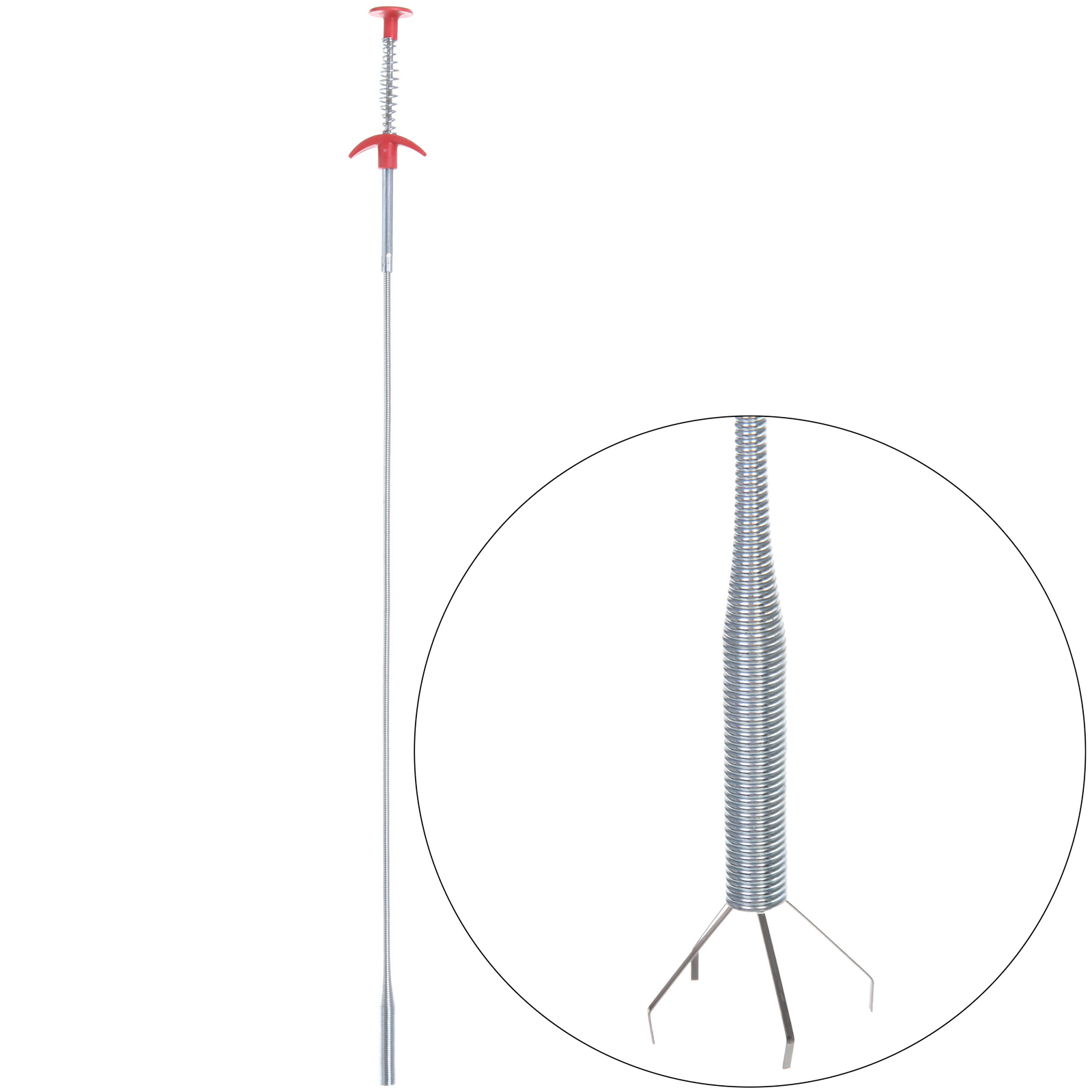 Использование троса очень простое. На конце троса расположен щуп, который позволяет захватить источник засора. Для этого достаточно нажать на пружину вверху троса, и щуп выдвинется, раскрывшись на другом конце. Подцепите засор и отпустите пружину — щуп сомкнется, надежно зажав вылавливаемый предмет. Это делает процесс удаления засоров быстрым и эффективным.