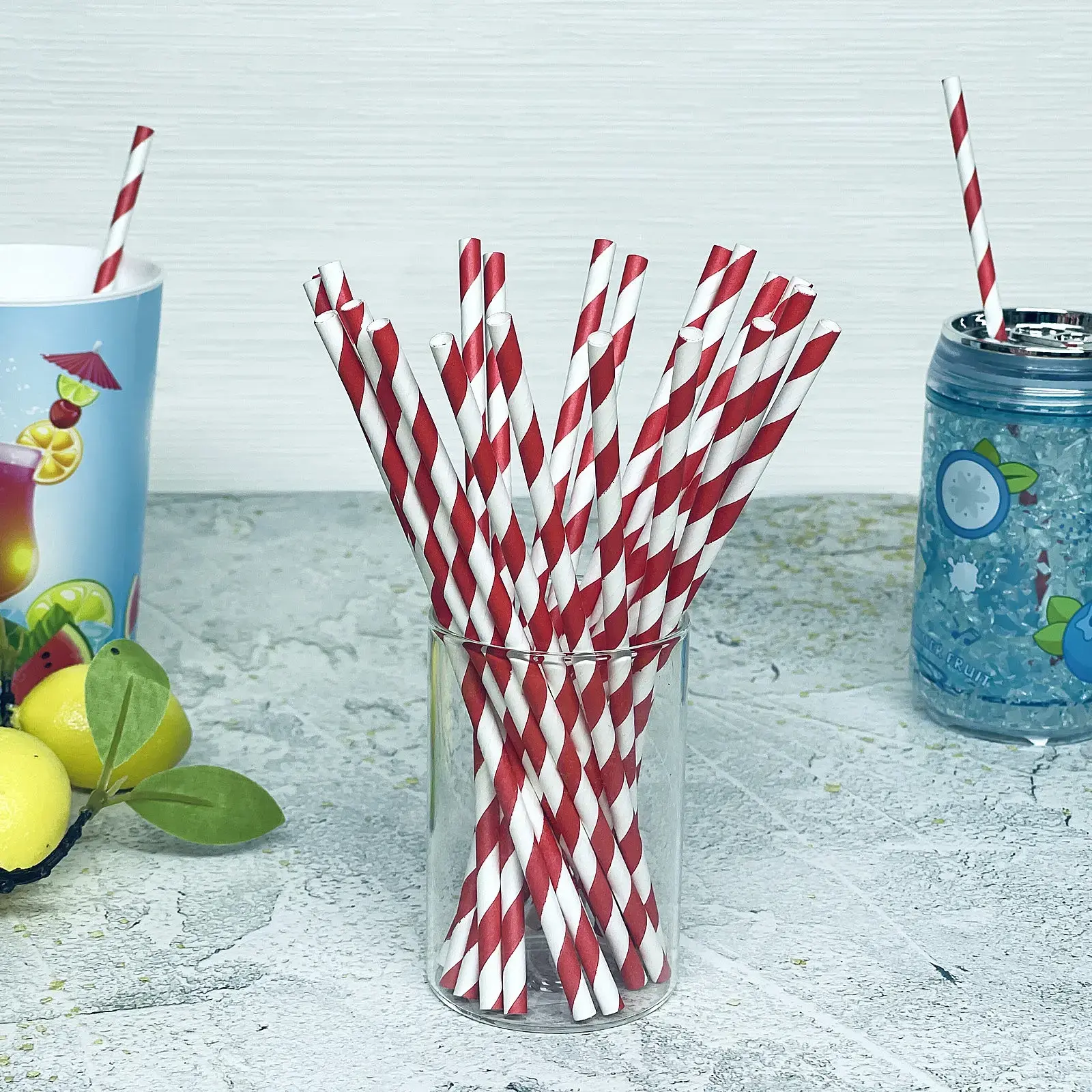 Трубочки в ярком красном цвете с диаметром 6 мм легко совместимы с разными стаканами и бокалами. Их удобно держать, а полосатый дизайн добавляет нотки веселья и стиля к вашему событию.