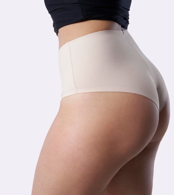 Трусики 'Brasil' бразилиана с высокой талией, невидимые под одеждой, размер M, телесный, полиамид/эластан