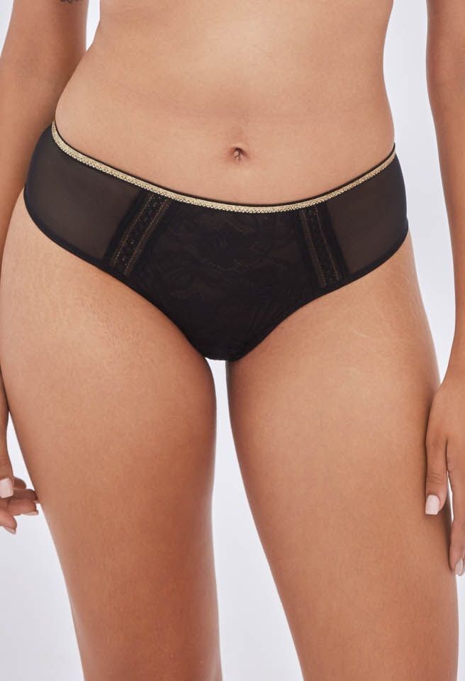 Трусики-бразилиана Alles Chiara с золотистой резинкой, кружево, черные, размер 42 (EU)