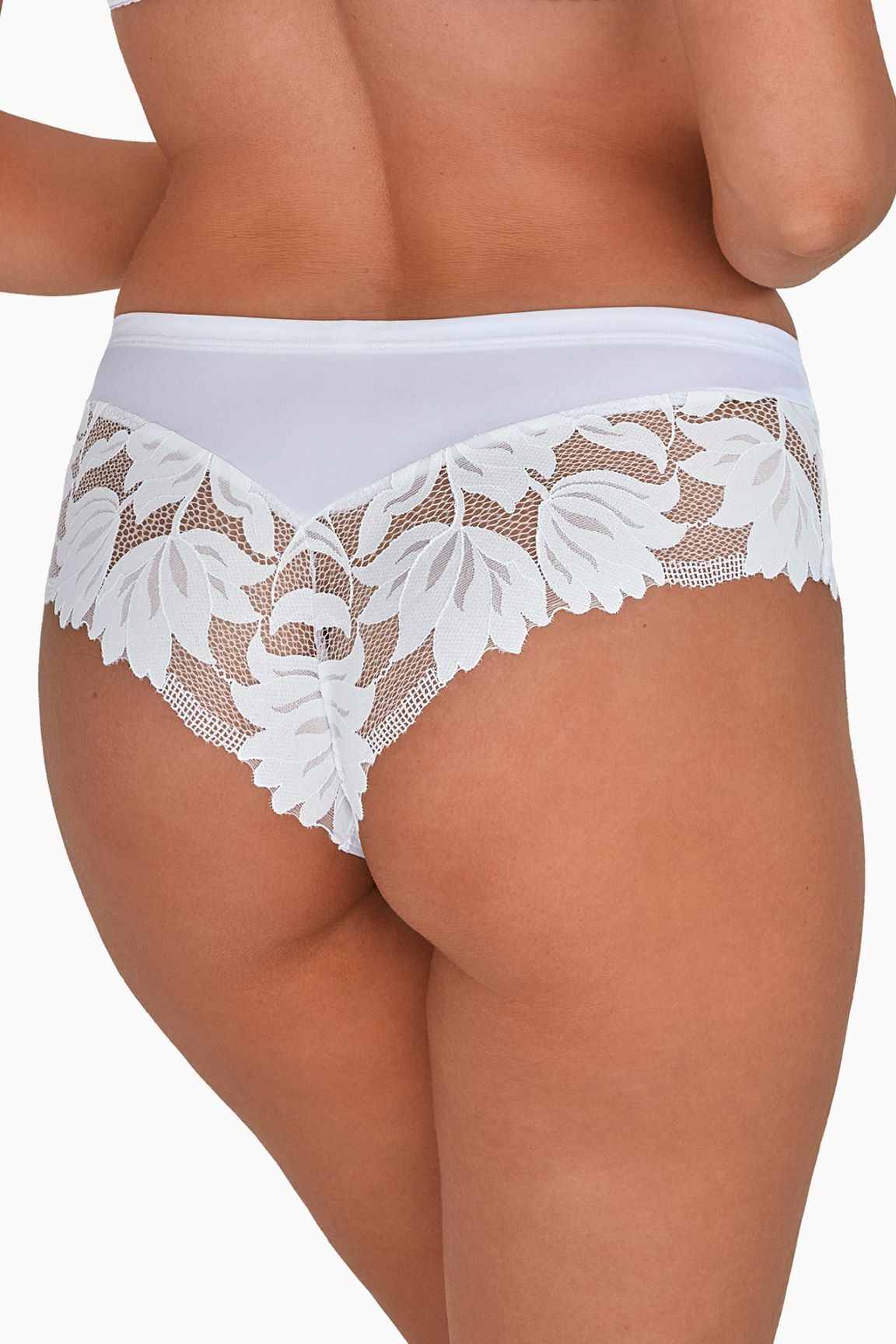 Трусики-бразилиана "Gaia" XL, белые, кружево с растительным узором