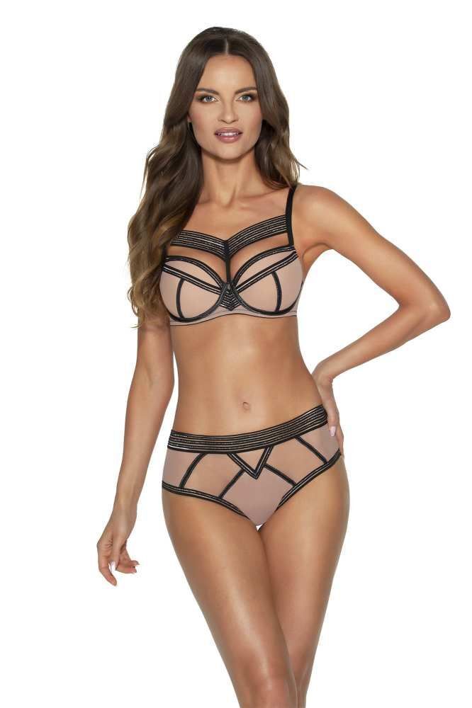 Стильные декоративные строчки создают эффект корсетной ленты, визуально моделируя силуэт. Полупрозрачная структура ткани обеспечивает лёгкость ношения, а трёхслойная отделка в критических зонах гарантирует необходимую плотность.